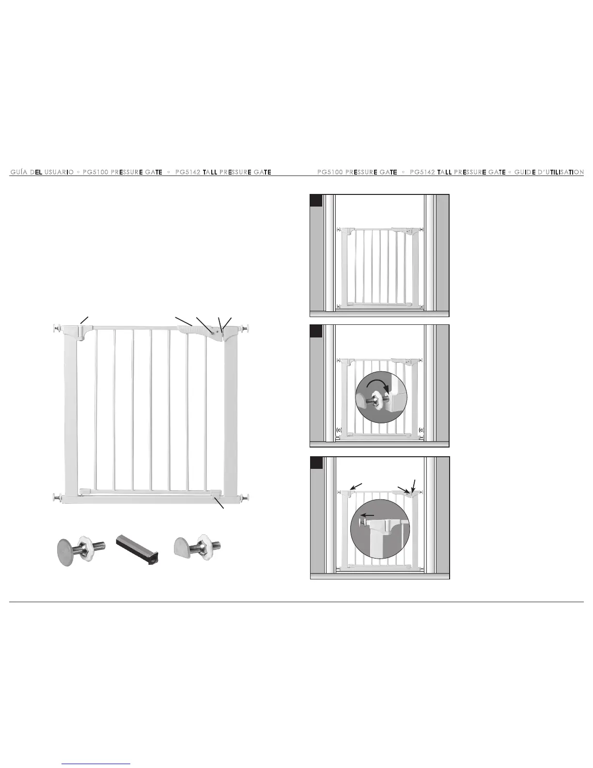 PG5100 PRESSURE GATE • PG5142 TALL PRESSURE GATE • GUIDE D’UTILISATIONGUÍA DEL USUARIO • PG5100 PRESSURE GATE • PG5142 TALL PRESSURE GATE