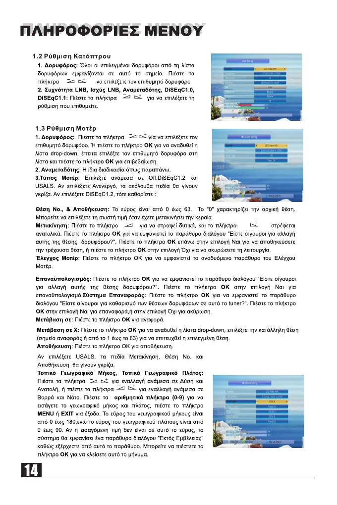 Commander 9100 HD - 1.2 Dish Setting; 1.3 Motorized Setting