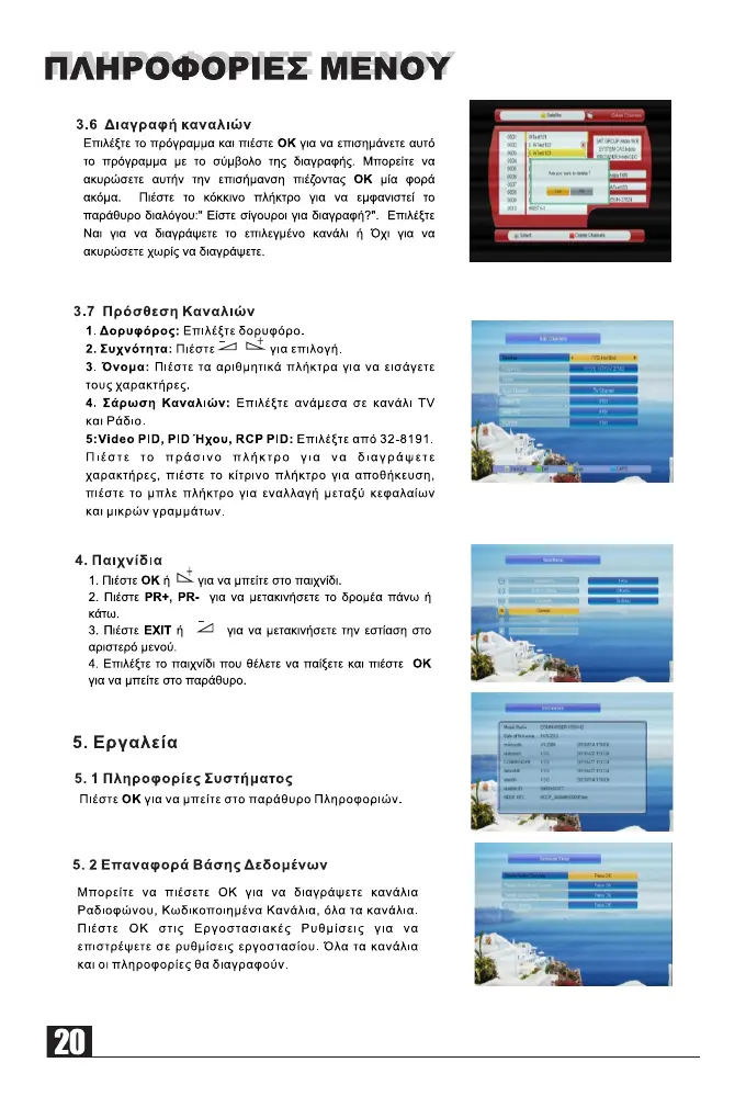 Commander 9100 HD - 3.6 Delete Channels; 3.7 Add Channels; 4. Games; 5. Tools