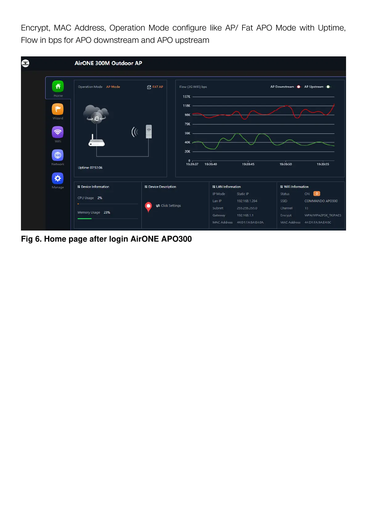 Encrypt, MAC Address, Operation Mode configure like AP/ Fat APO Mode with Uptime,