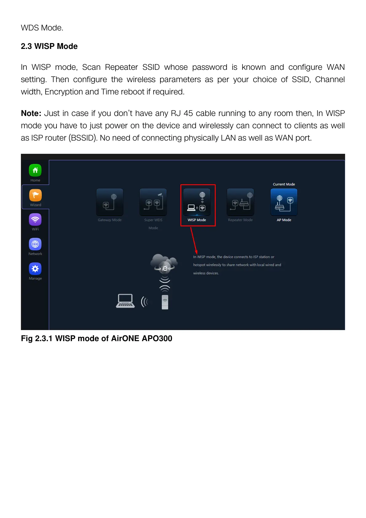 mode you have to just power on the device and wirelessly can connect to clients as well