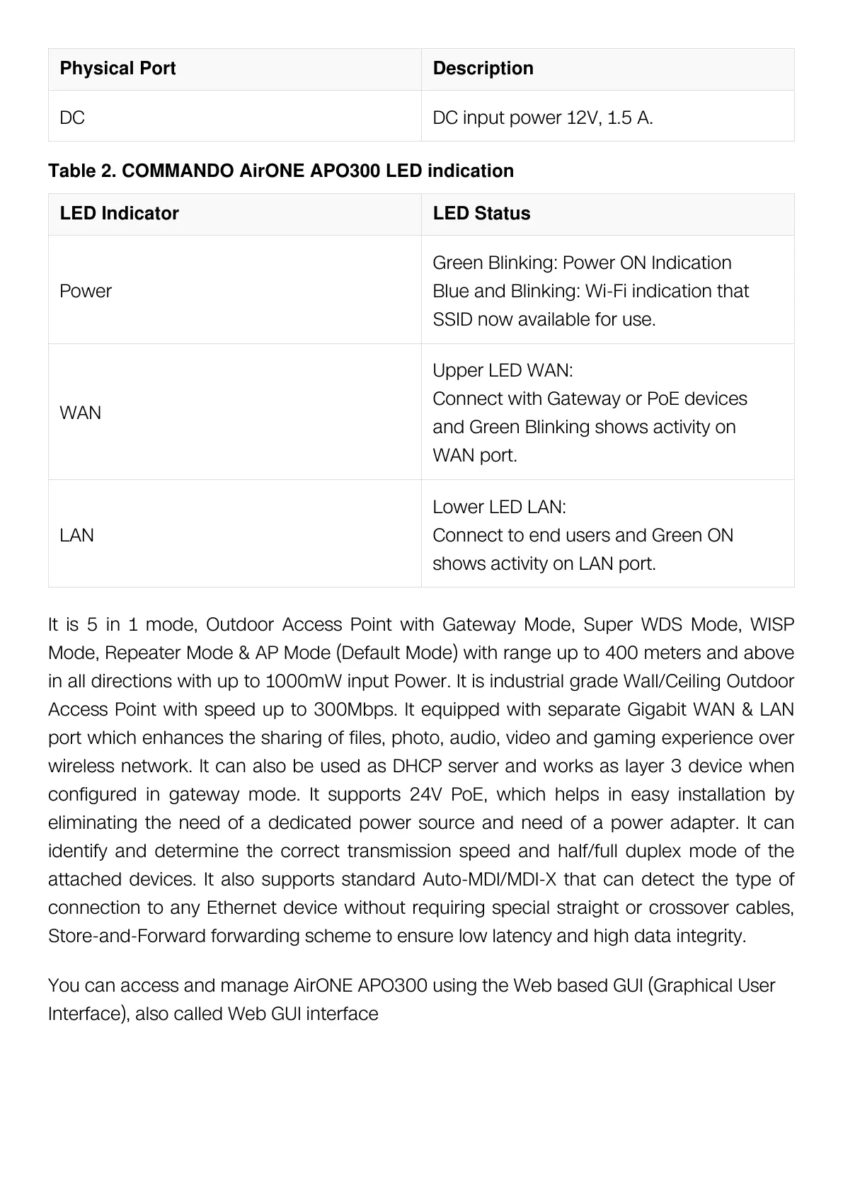 You can access and manage AirONE APO300 using the Web based GUI (Graphical User