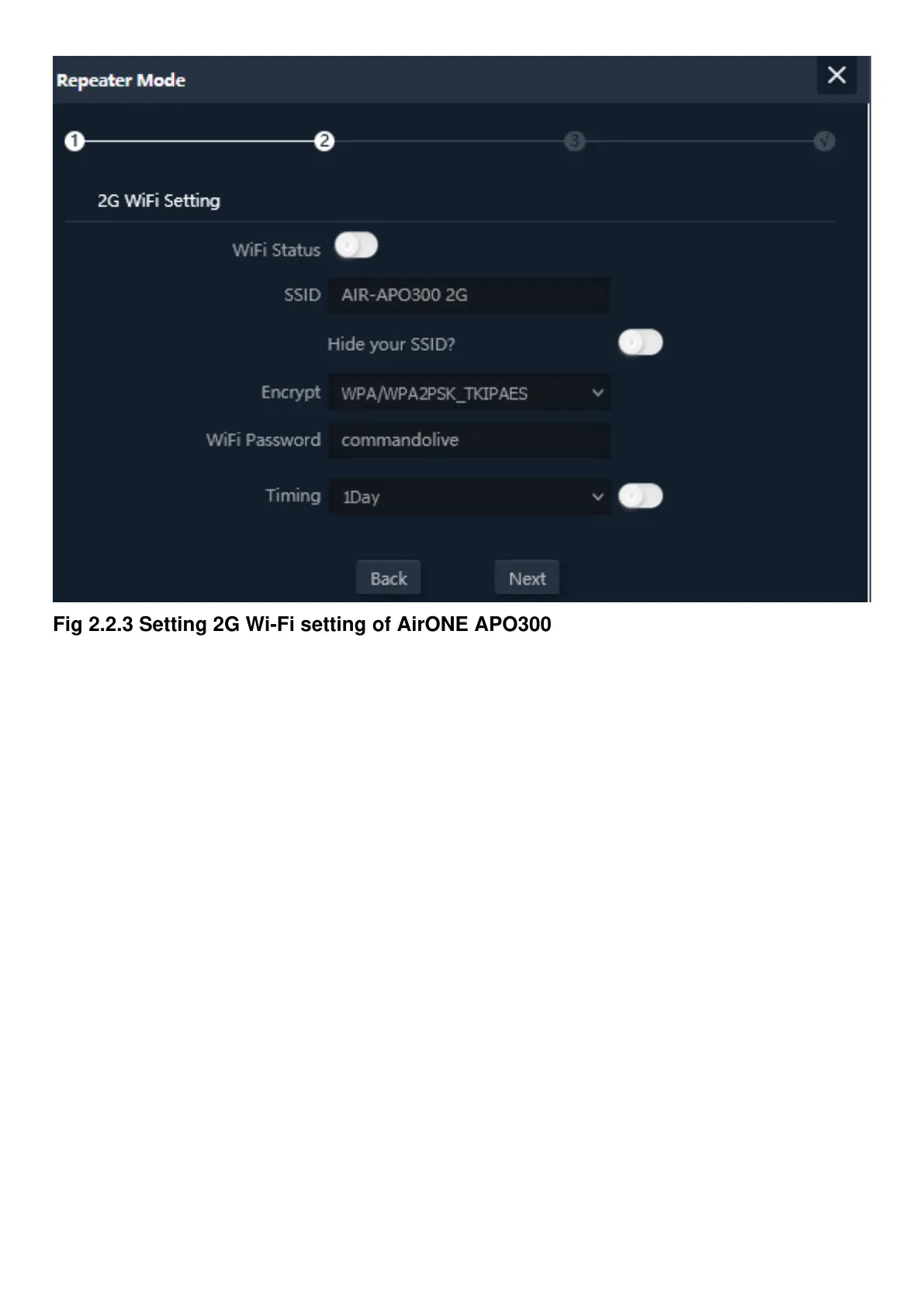 Fig 2.2.3 Setting 2G Wi-Fi setting of AirONE APO300