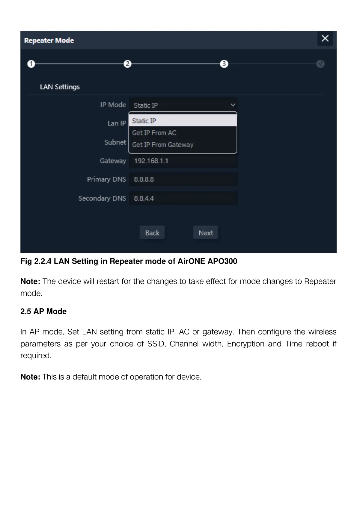 Fig 2.2.4 LAN Setting in Repeater mode of AirONE APO300