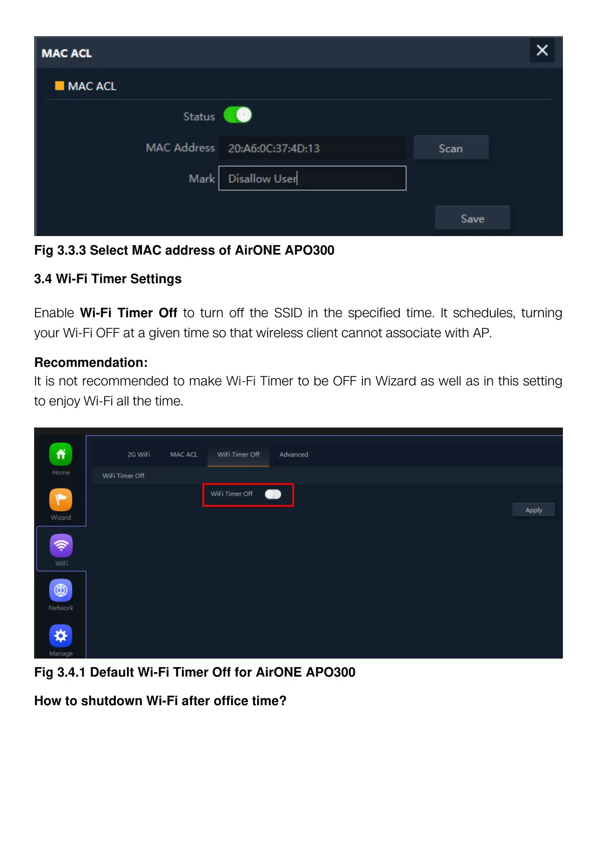 Fig 3.4.1 Default Wi-Fi Timer Off for AirONE APO300