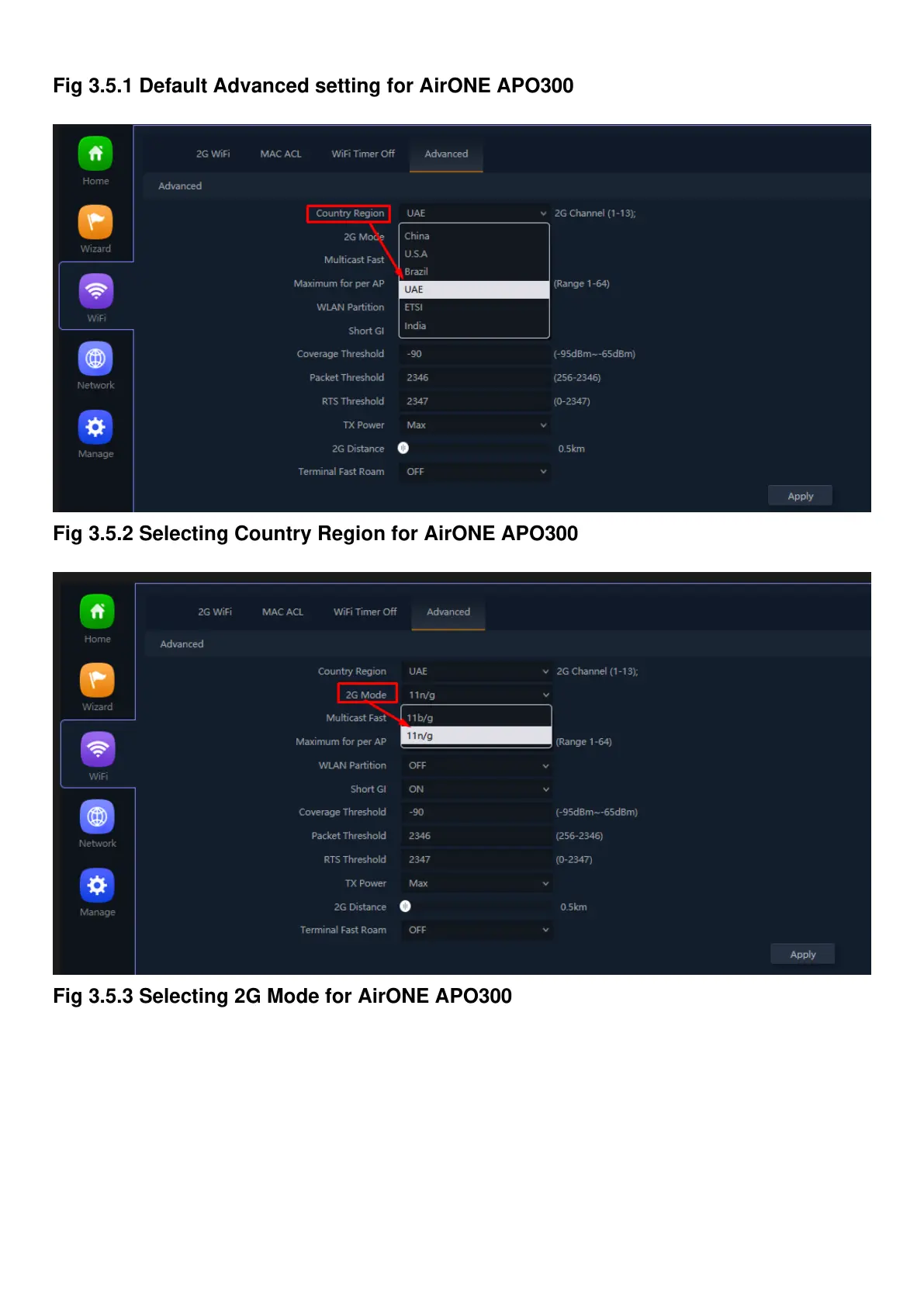 Fig 3.5.3 Selecting 2G Mode for AirONE APO300