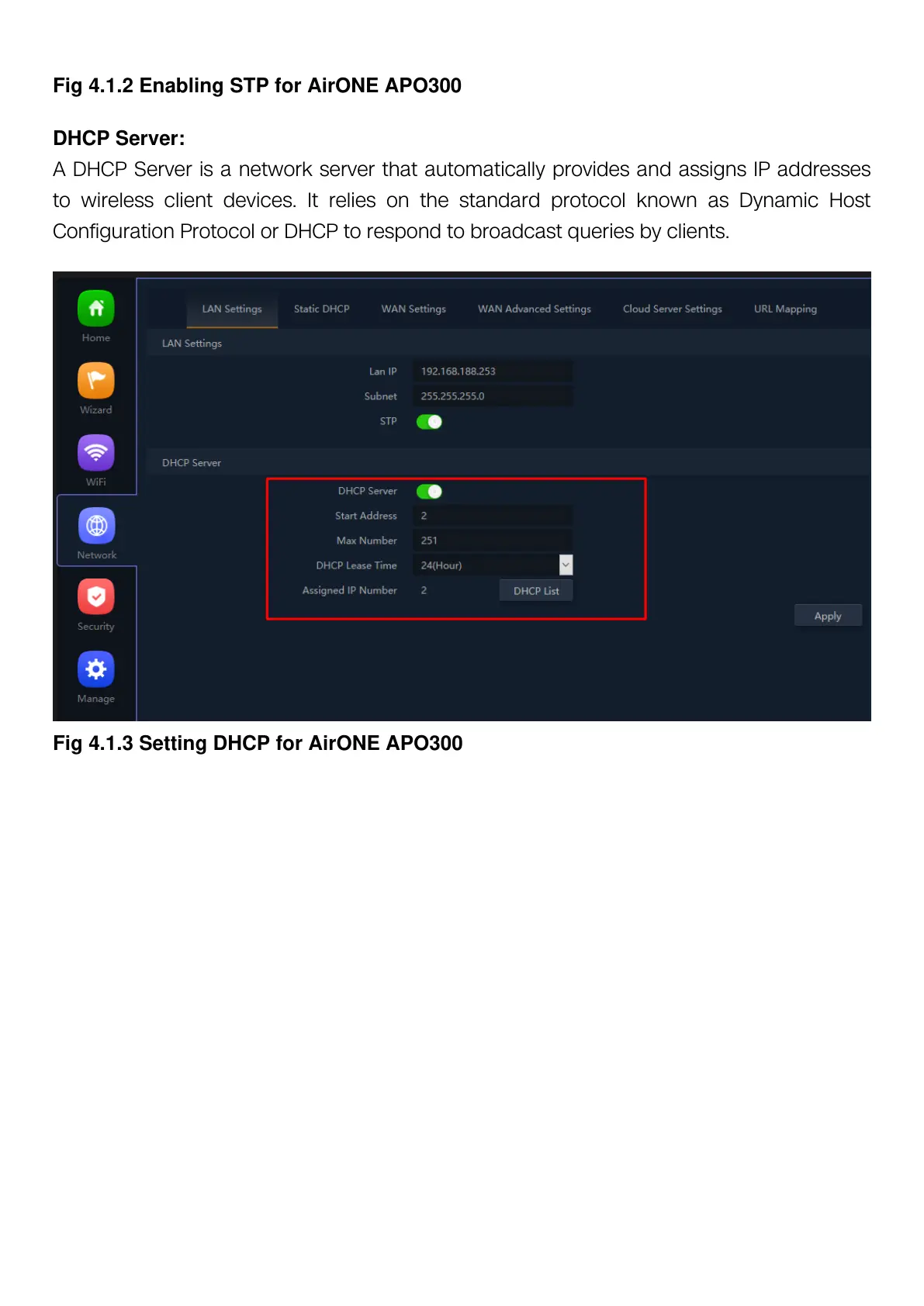 Fig 4.1.3 Setting DHCP for AirONE APO300