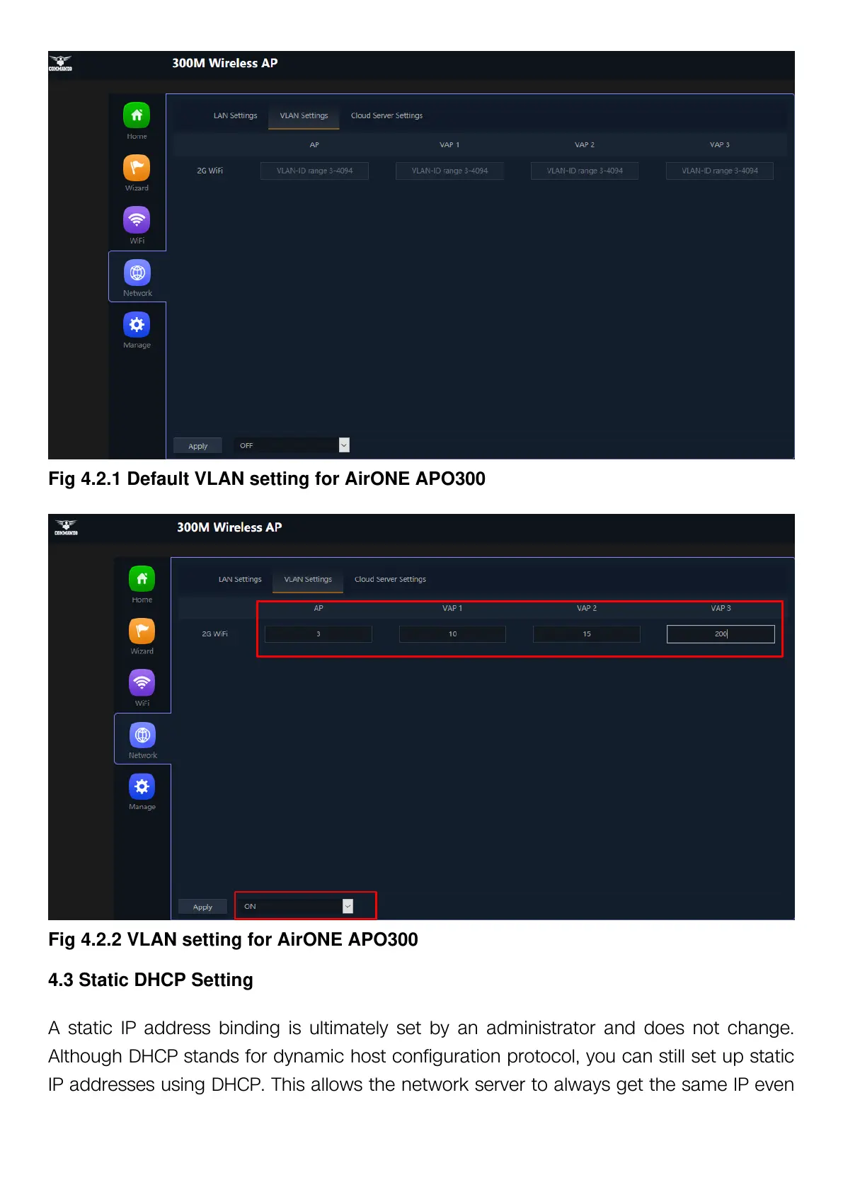 Fig 4.2.2 VLAN setting for AirONE APO300