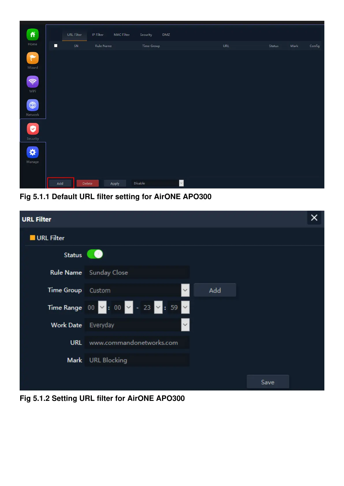 Fig 5.1.2 Setting URL filter for AirONE APO300