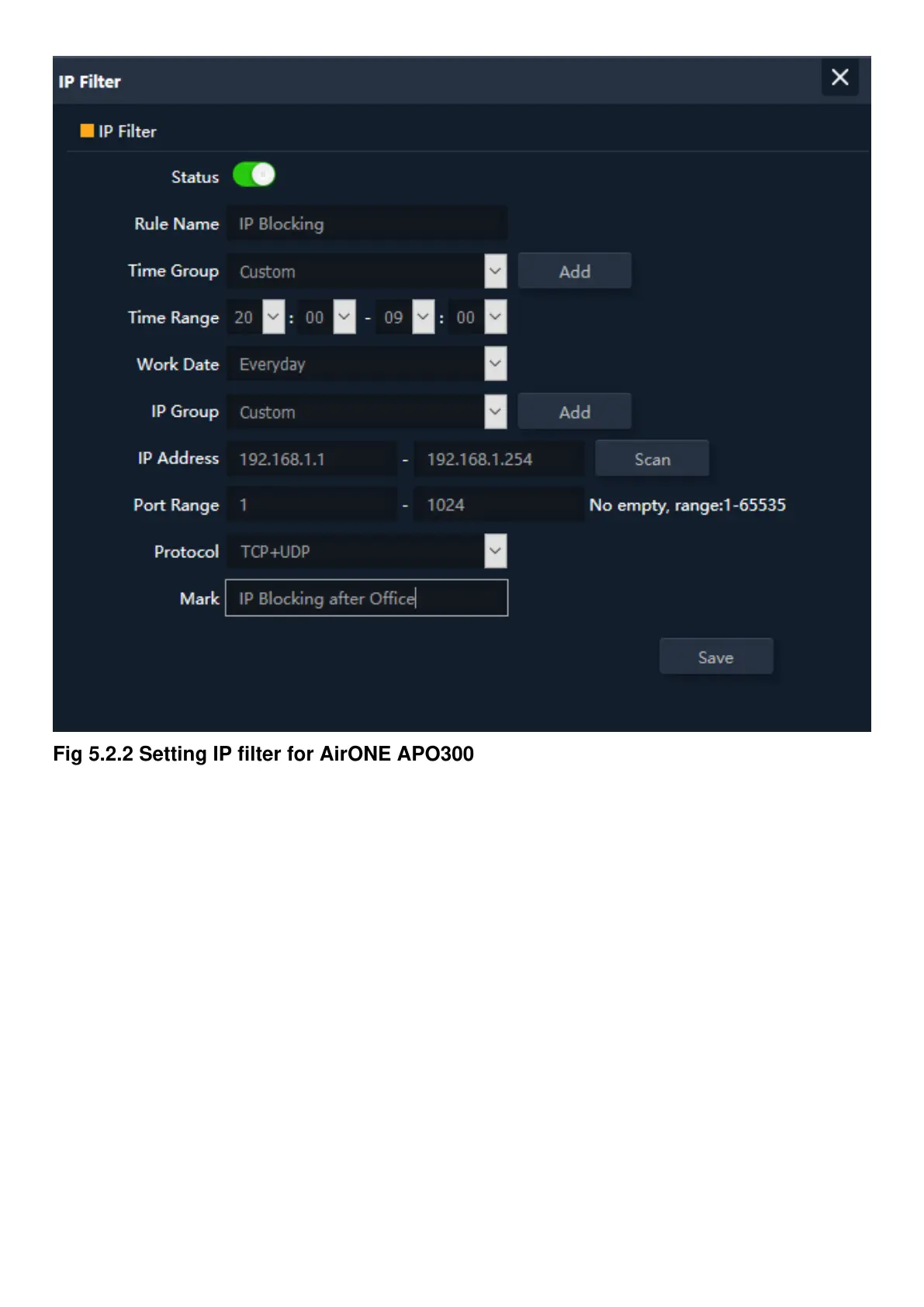Fig 5.2.2 Setting IP filter for AirONE APO300