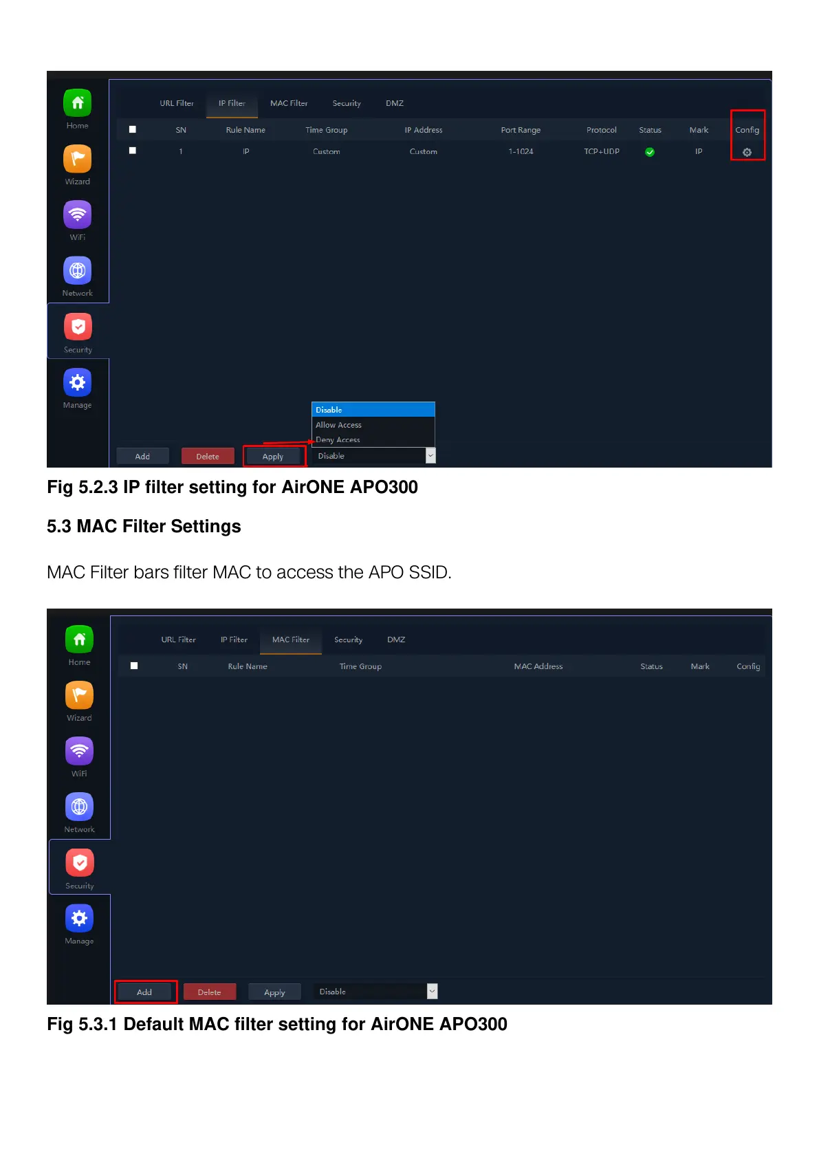 Fig 5.2.3 IP filter setting for AirONE APO300