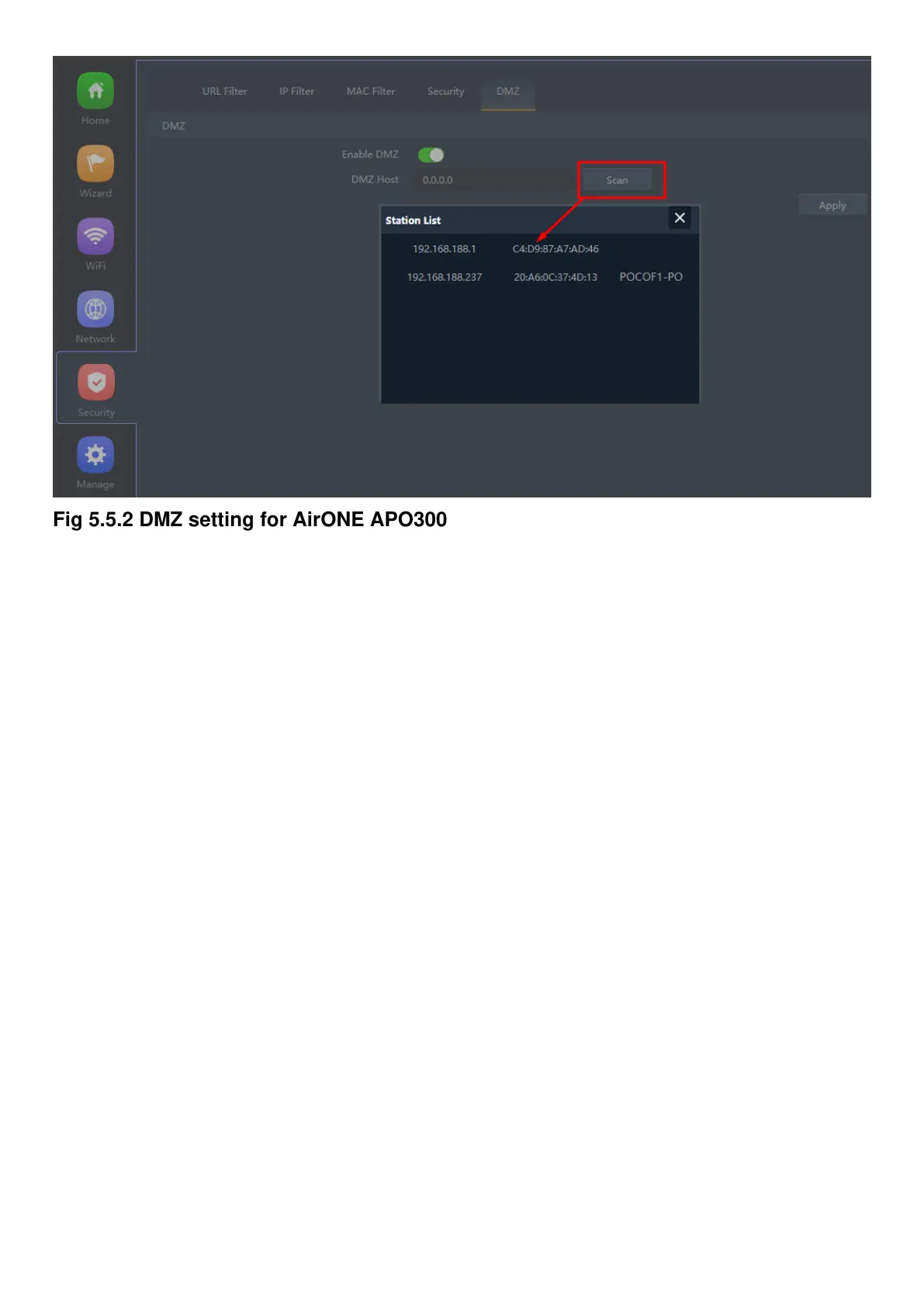 Fig 5.5.2 DMZ setting for AirONE APO300