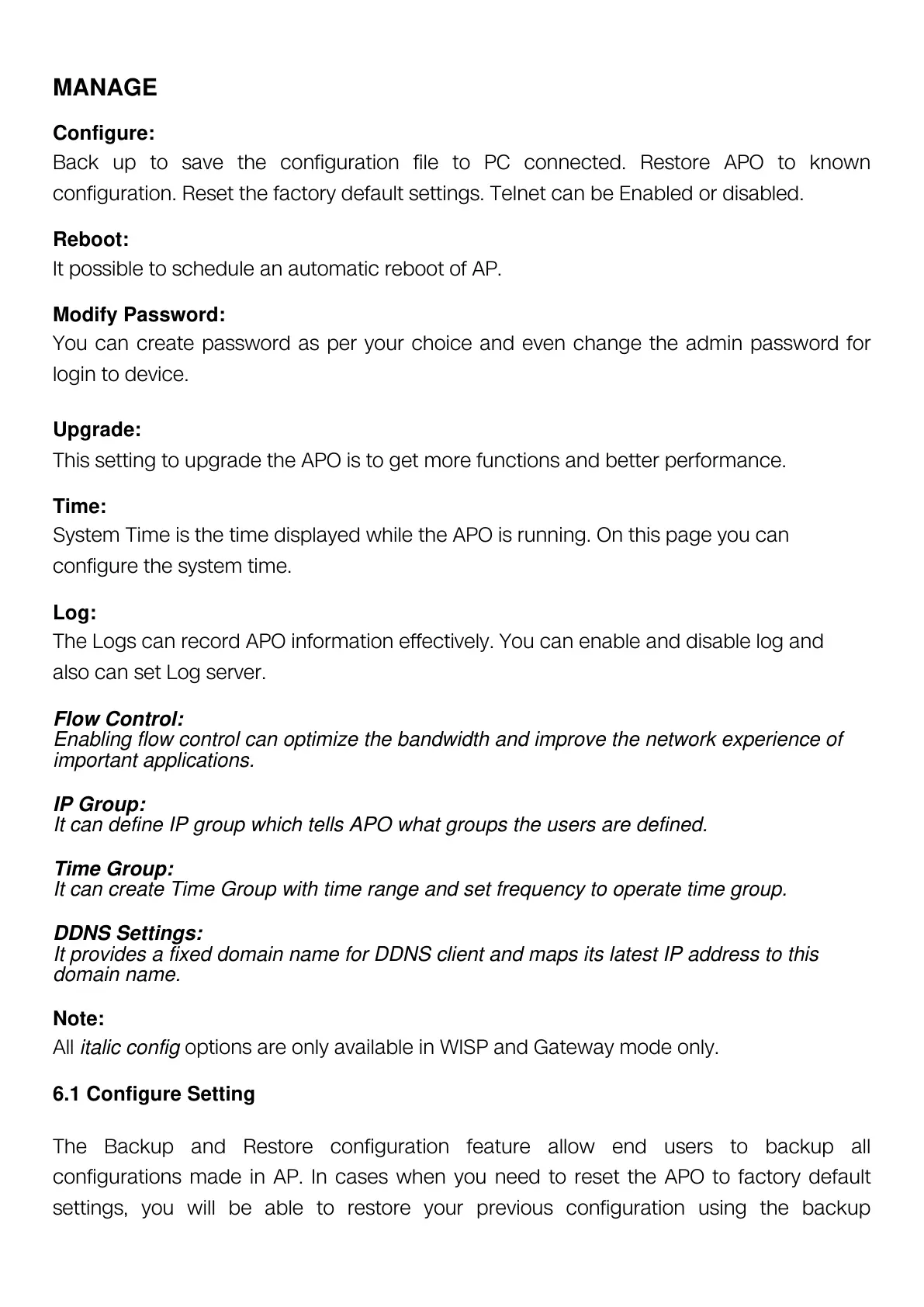 configurations made in AP. In cases when you need to reset the APO to factory default