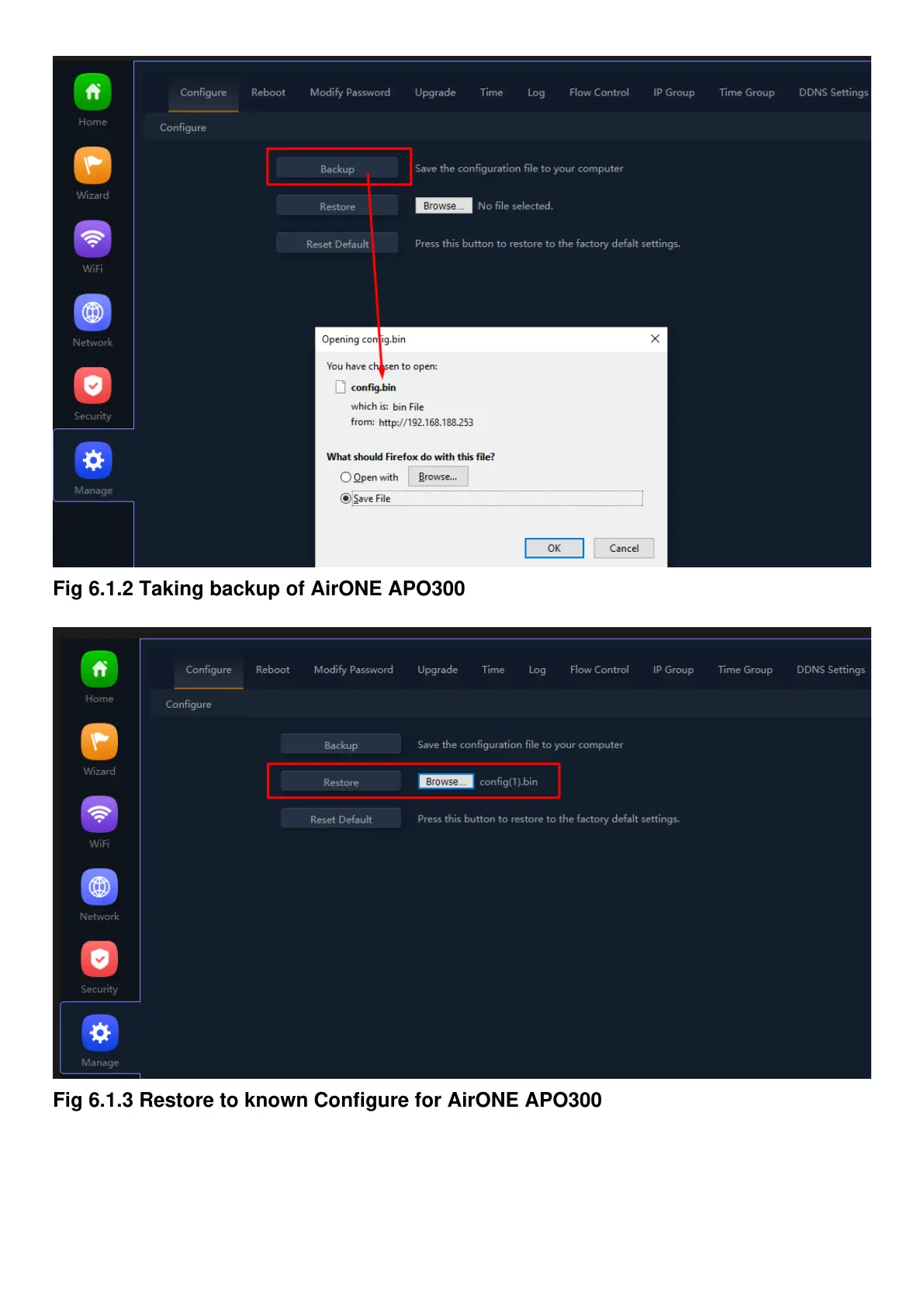 Fig 6.1.3 Restore to known Configure for AirONE APO300