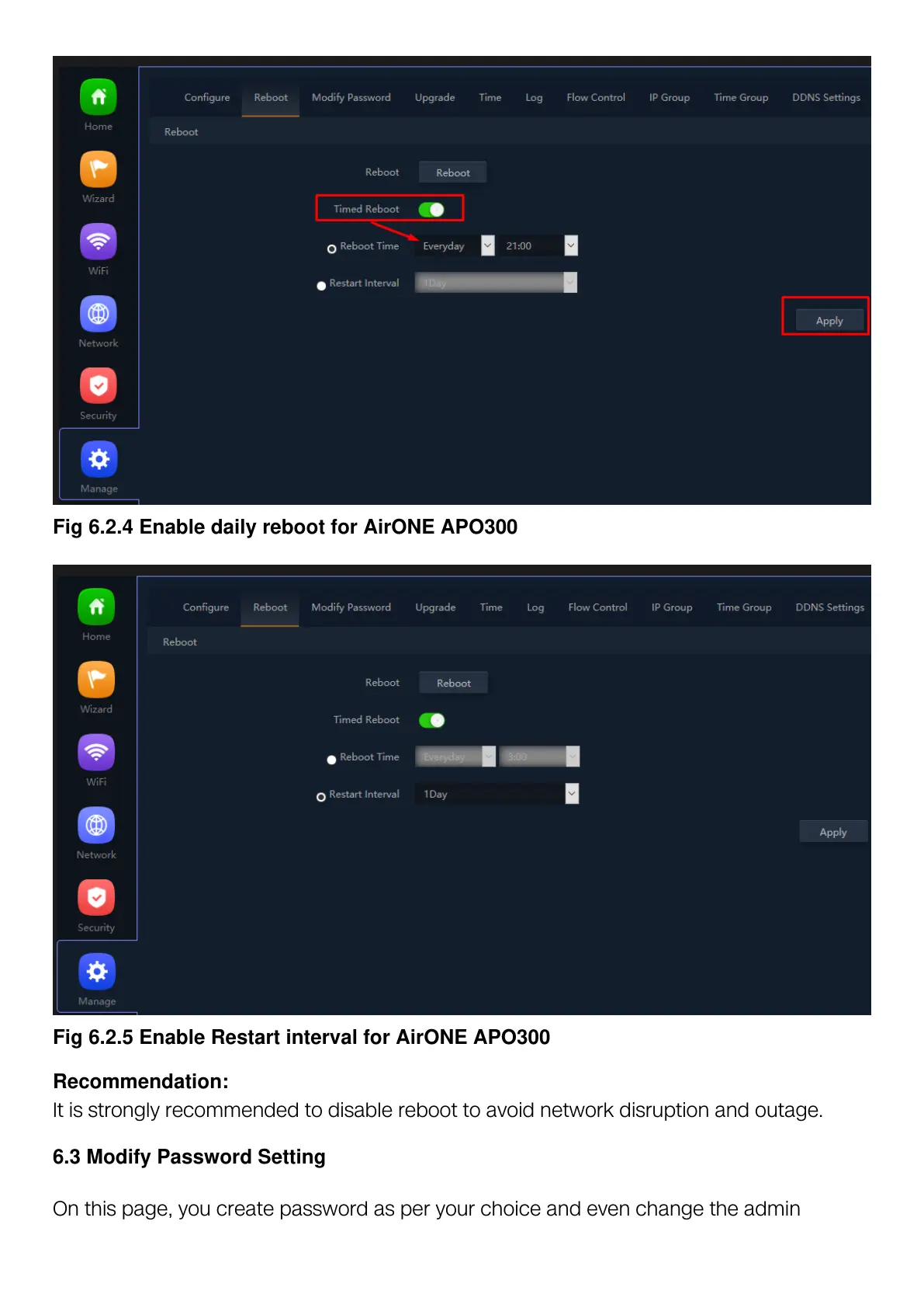 Fig 6.2.4 Enable daily reboot for AirONE APO300