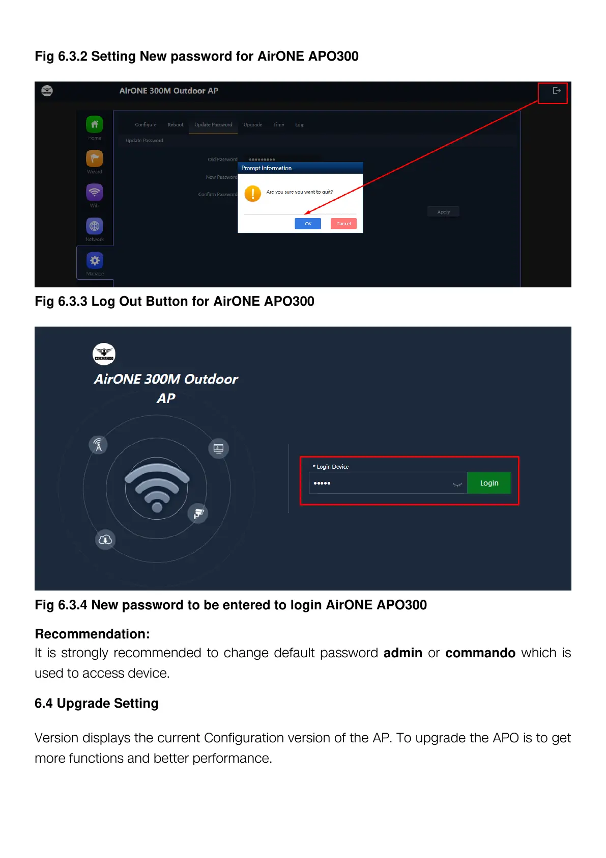 Fig 6.3.2 Setting New password for AirONE APO300