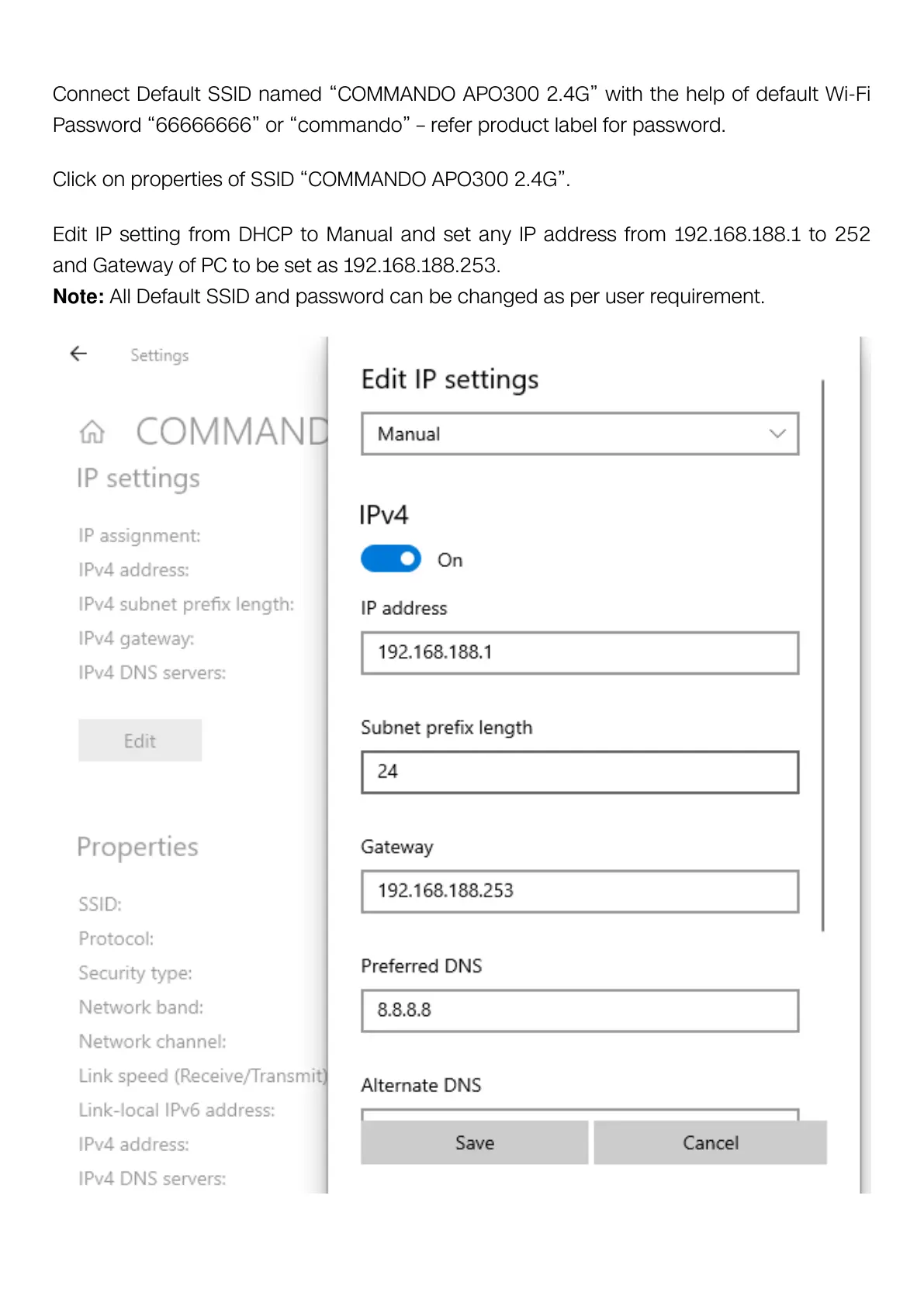 Connect Default SSID named “COMMANDO APO300 2.4G” with the help of default Wi-Fi