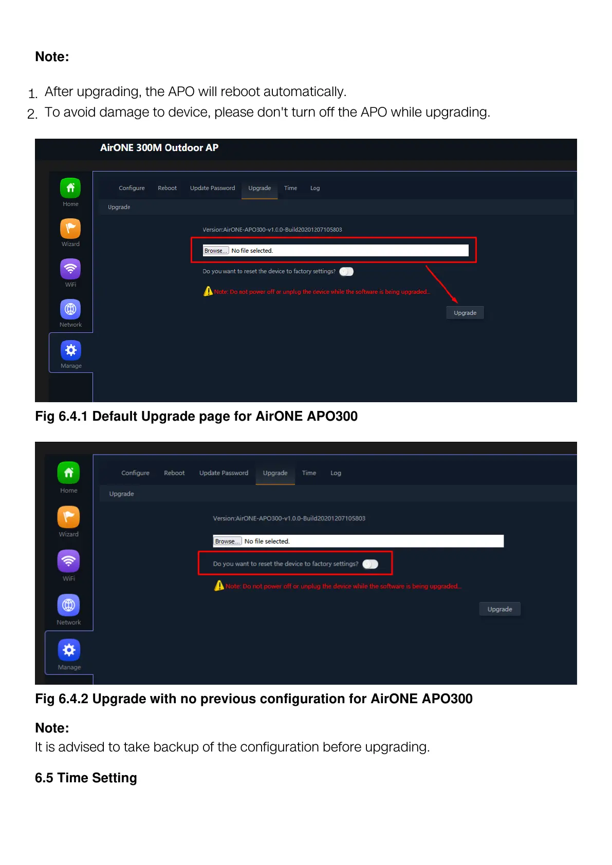 Fig 6.4.1 Default Upgrade page for AirONE APO300