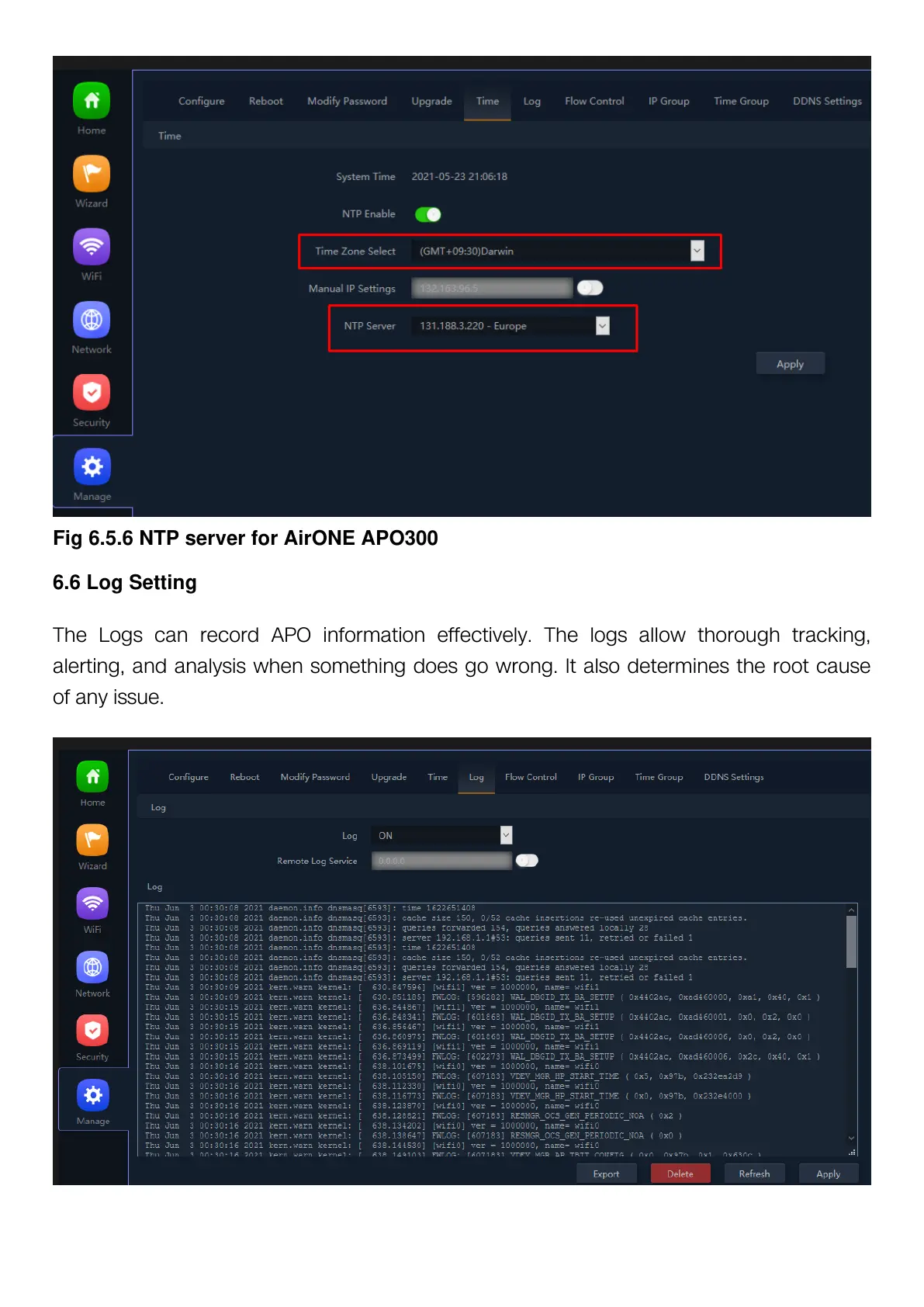 Fig 6.5.6 NTP server for AirONE APO300