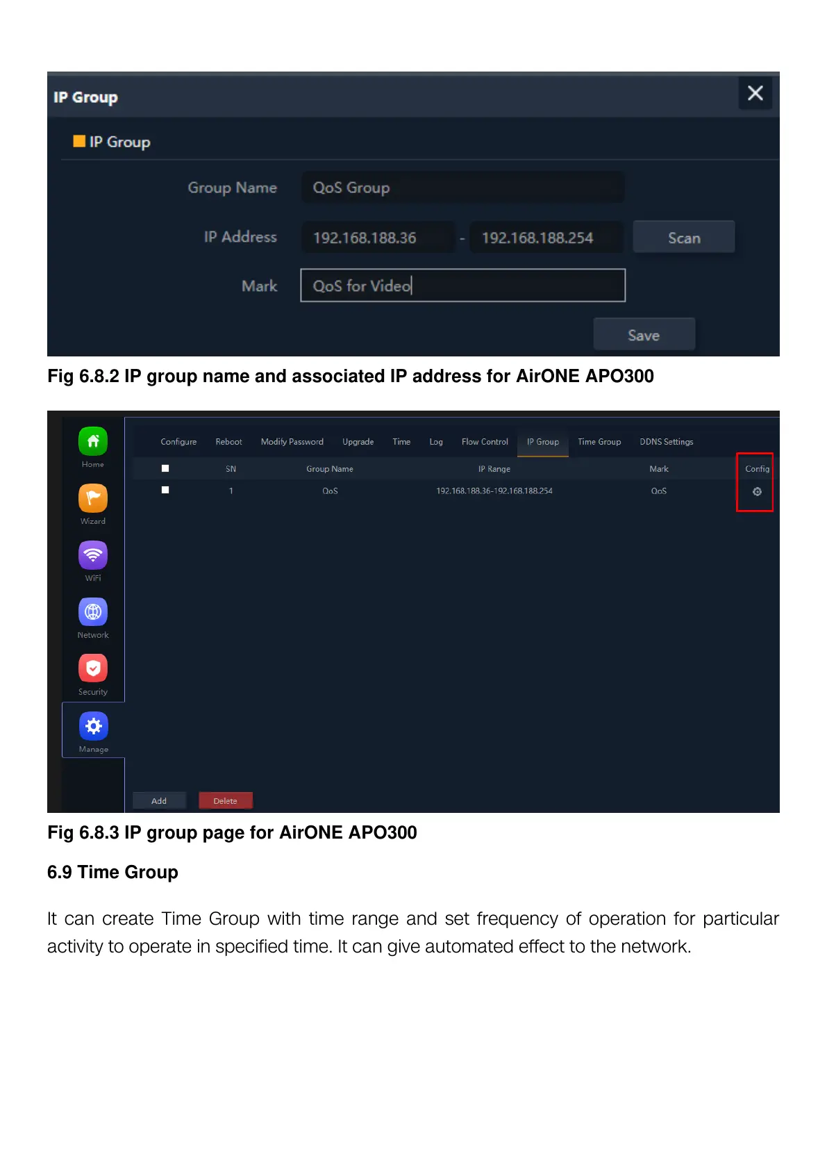 Fig 6.8.2 IP group name and associated IP address for AirONE APO300