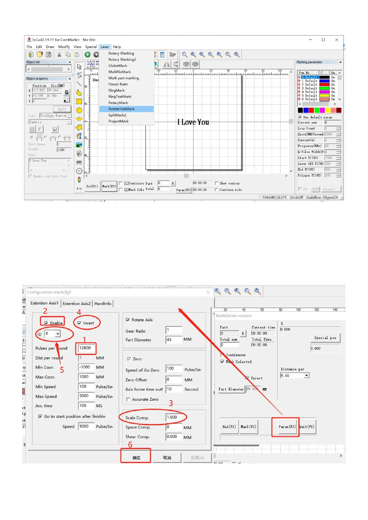 3. Select “Laser” from the menu, Choose “Rotate TextMark”, which is more suitable for marking simple text.