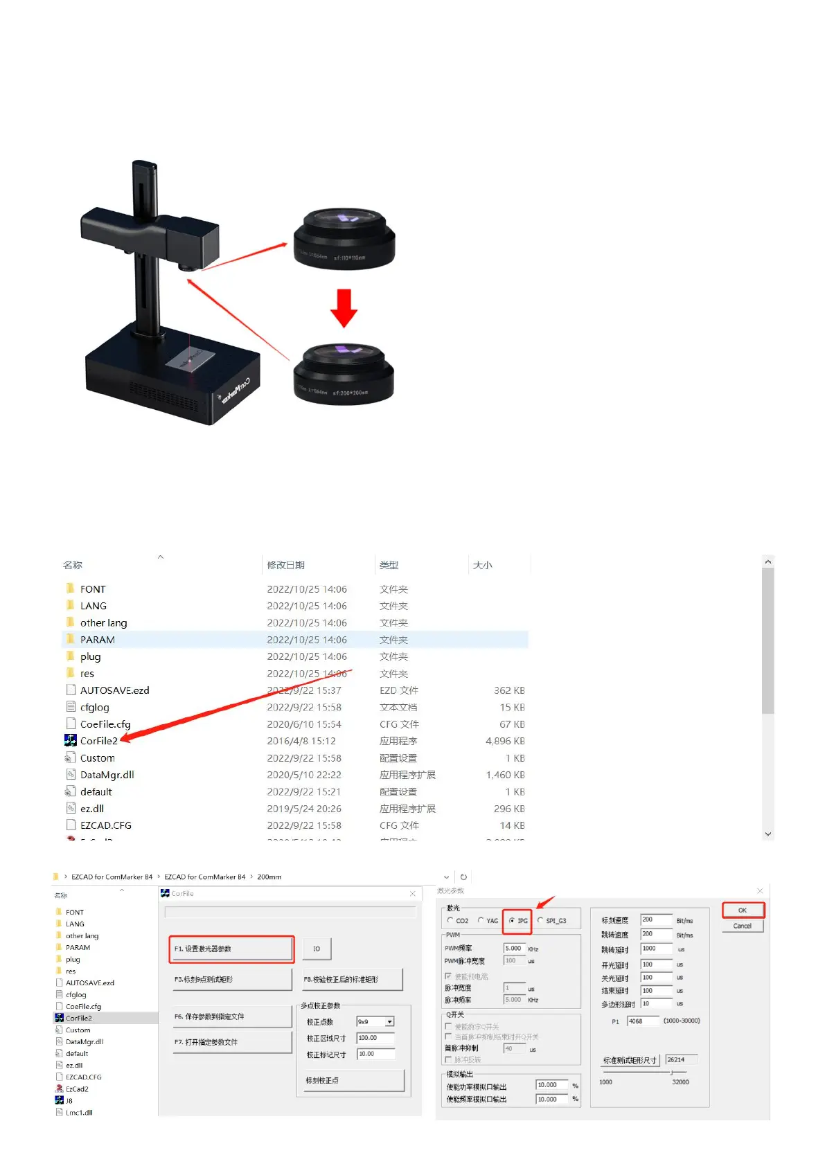 (1) Open the USB folder, open the "EZCAD for ComMarker" folder, and select the 200mm folder. Open the software