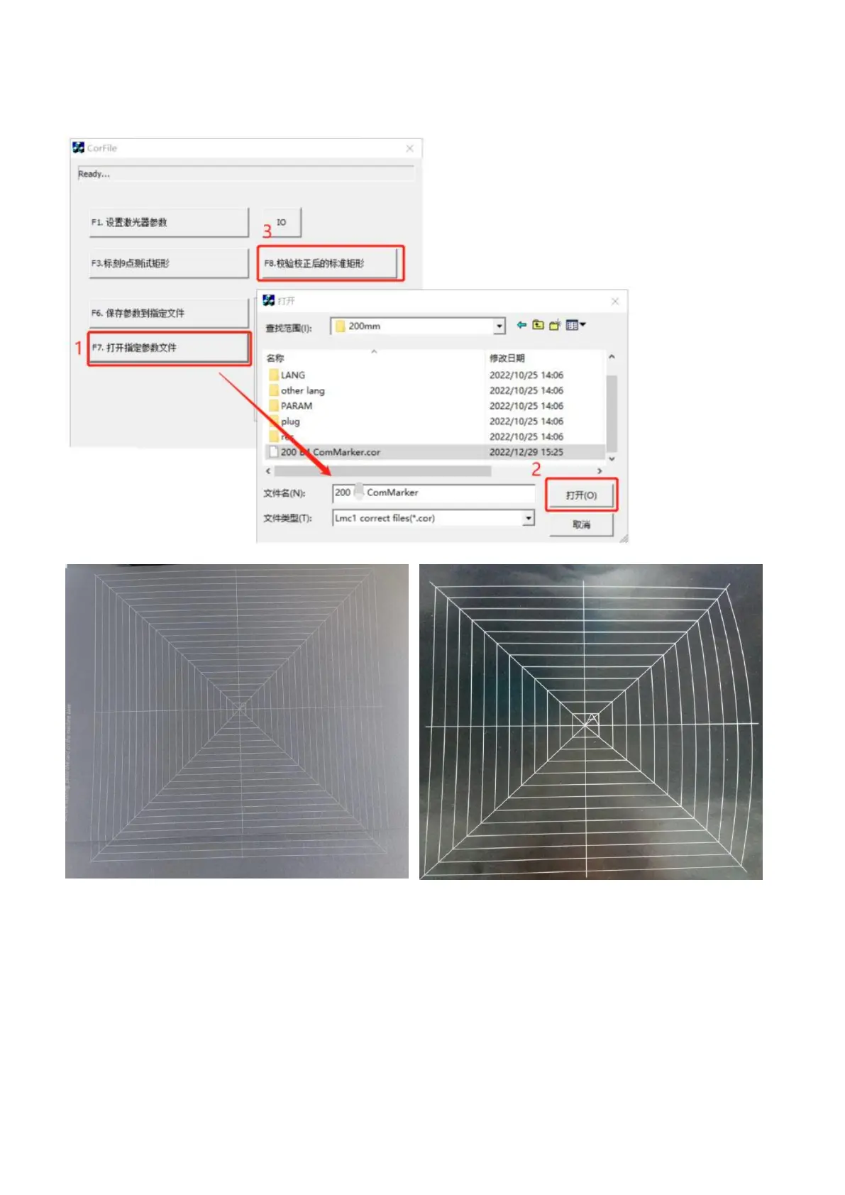 (9) Import the calibration file for 200mm lens in the software EZCAD2, please refer to Operation Instructions ---> Step 3