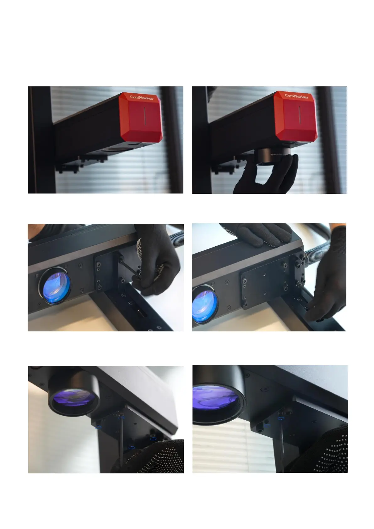 6. Adjust the set screws to ensure that the laser head