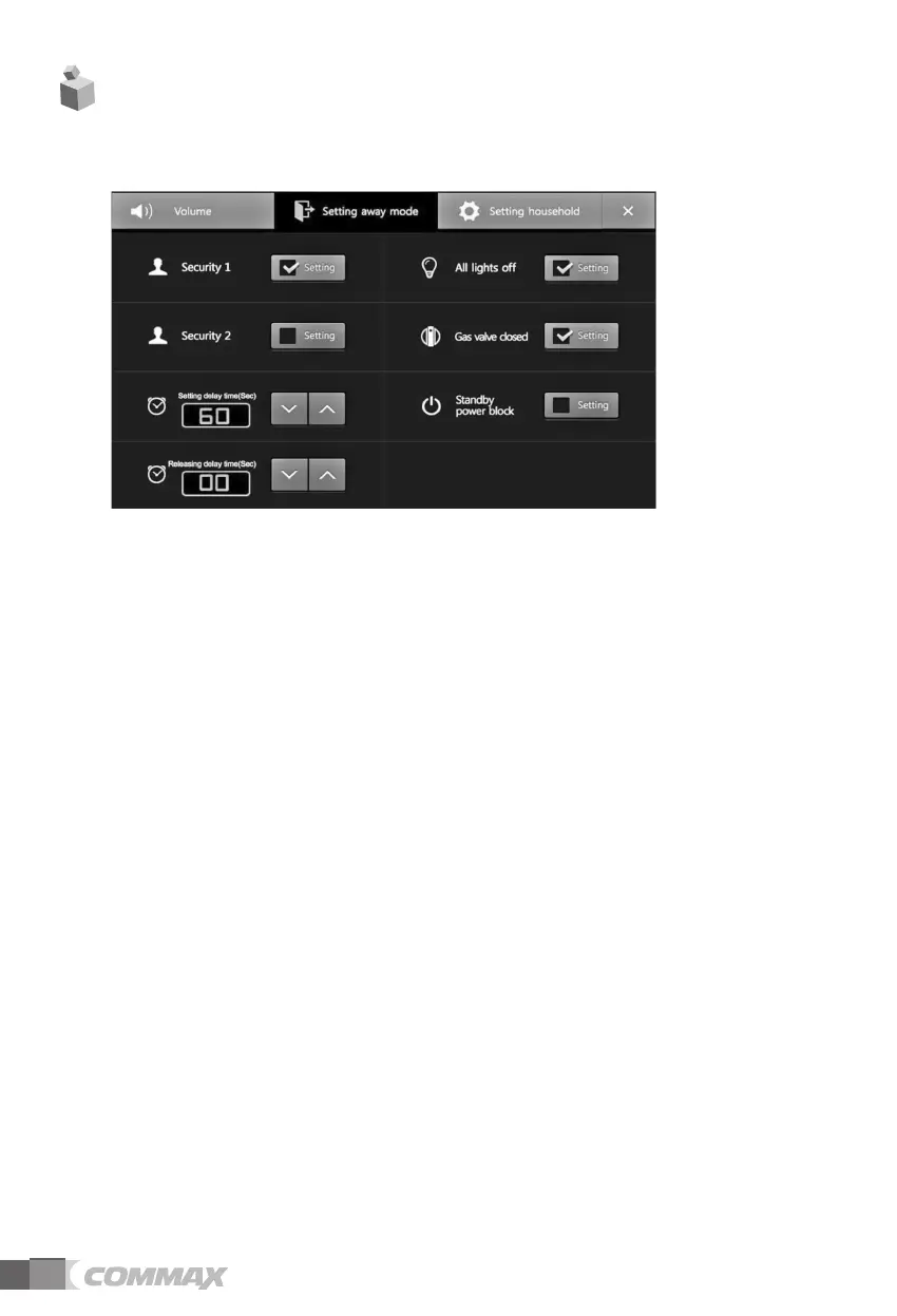 Setting delay time(Sec) - You can choose delay time after activating away mode.