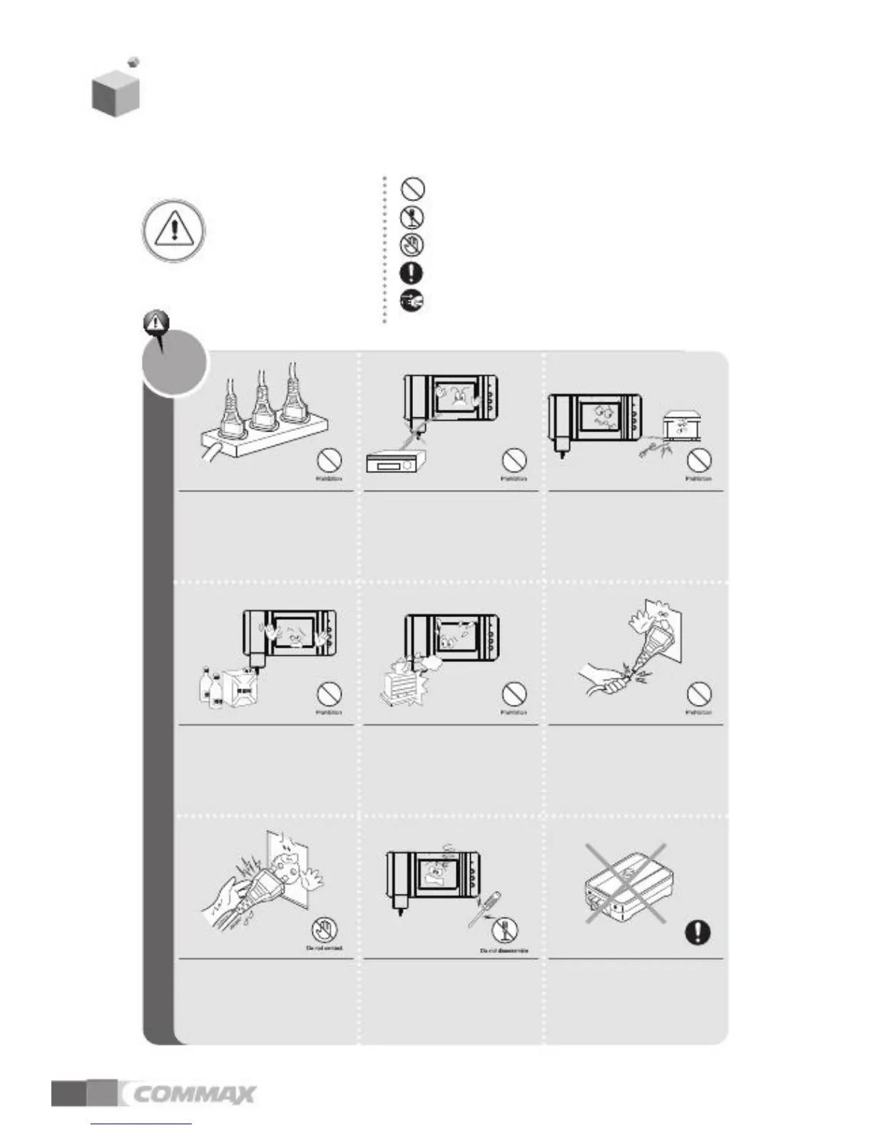 Commax CDV-43N - Warnings and Cautions; Critical Safety Warnings; Operational and Environmental Cautions