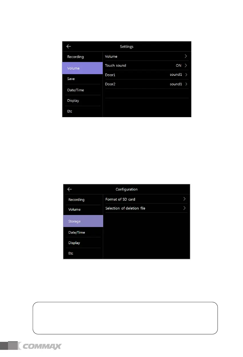 - You can select calling tone of interphone and individual door camera. (Door1, Door2)
