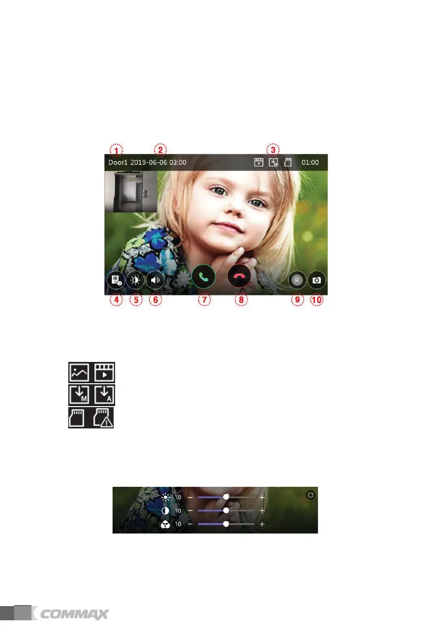 - The following screen will be shown when calling from door camera or touching the