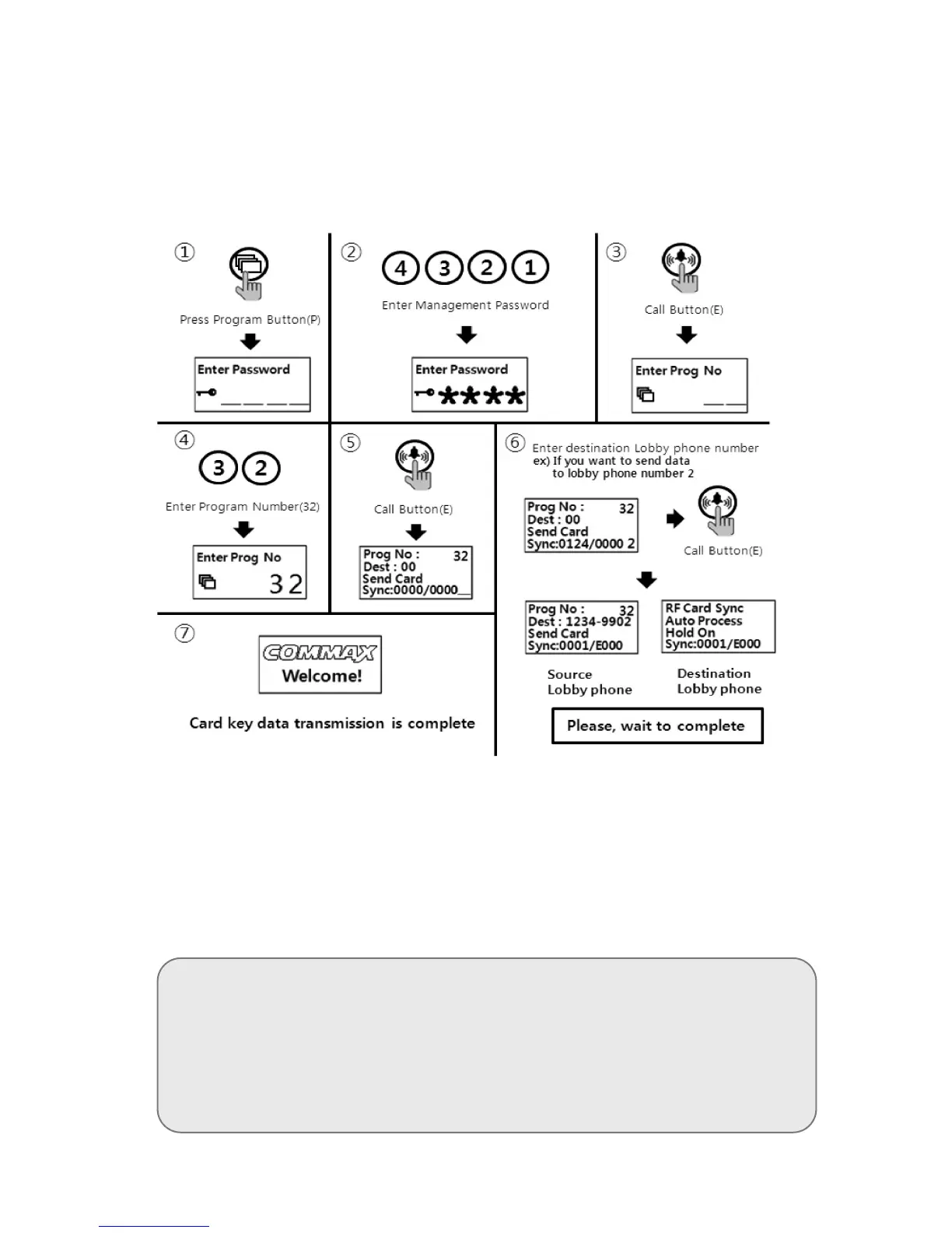 P - Management Passwords - E - 32 - E - Press destination lobby phone number - E
