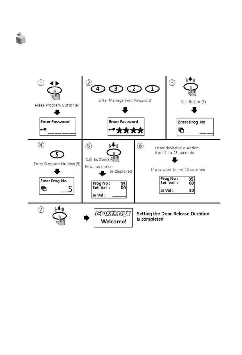 ⑦ Press down any number for setting of door opening hours between 0~25 seconds