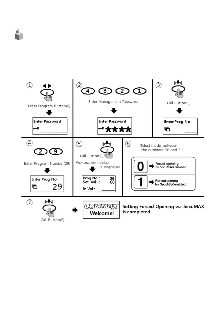 • This function is to set the opening the Main Entrance door forced opening by SecuMAX