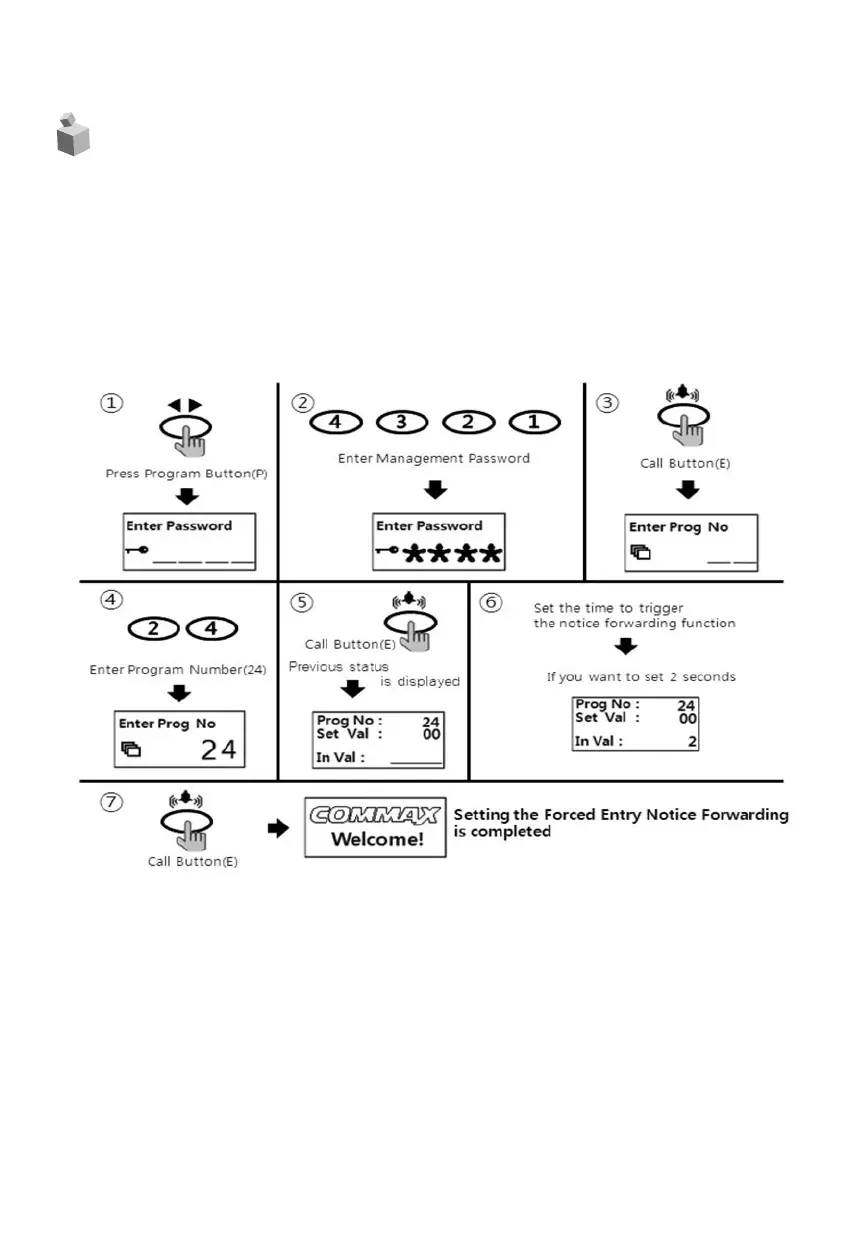 • P - Management password - E - 29 - E - 1 - E : Set the time(second)