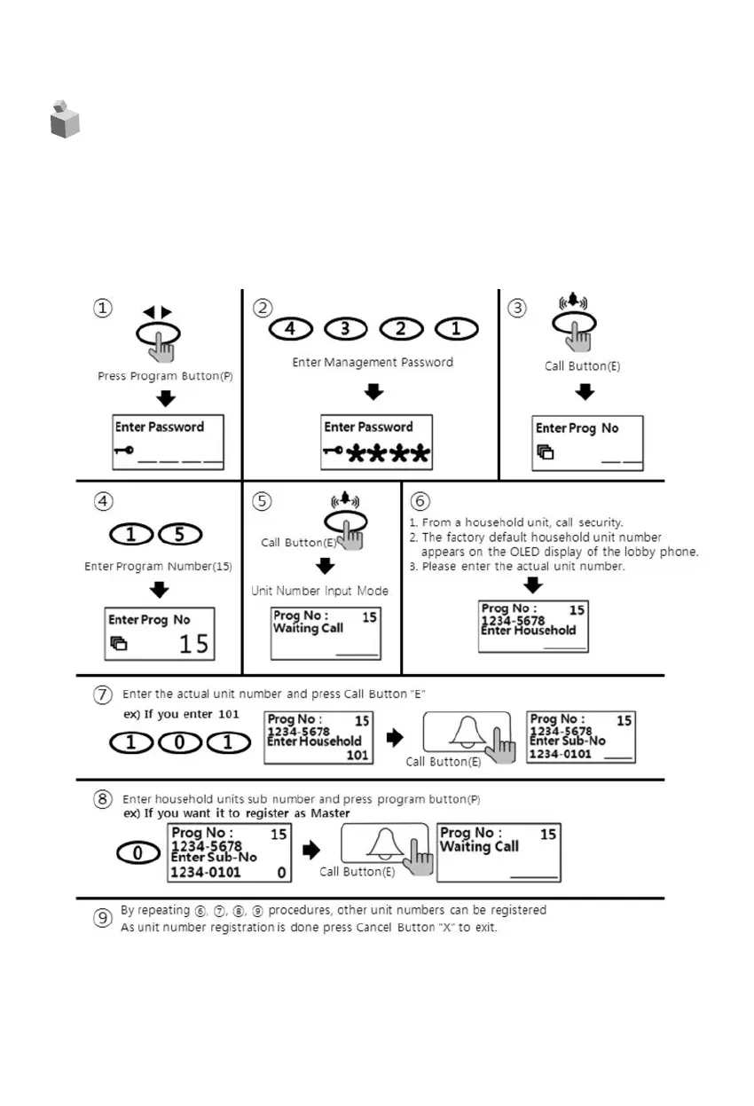 security from the monitor will direct the call to the lobby phone. Household Unit Number