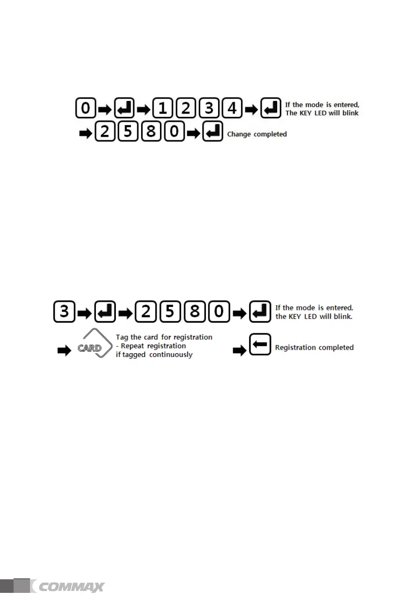 ③ When the RF card registration mode is successfully entered, the KEY LED will blink.