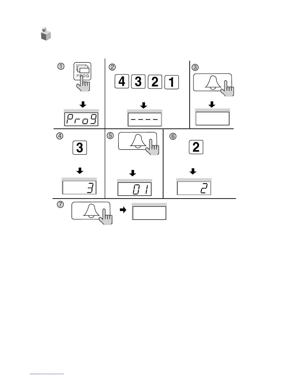 ① Press the Program button (P). (‘Prog’will appear)