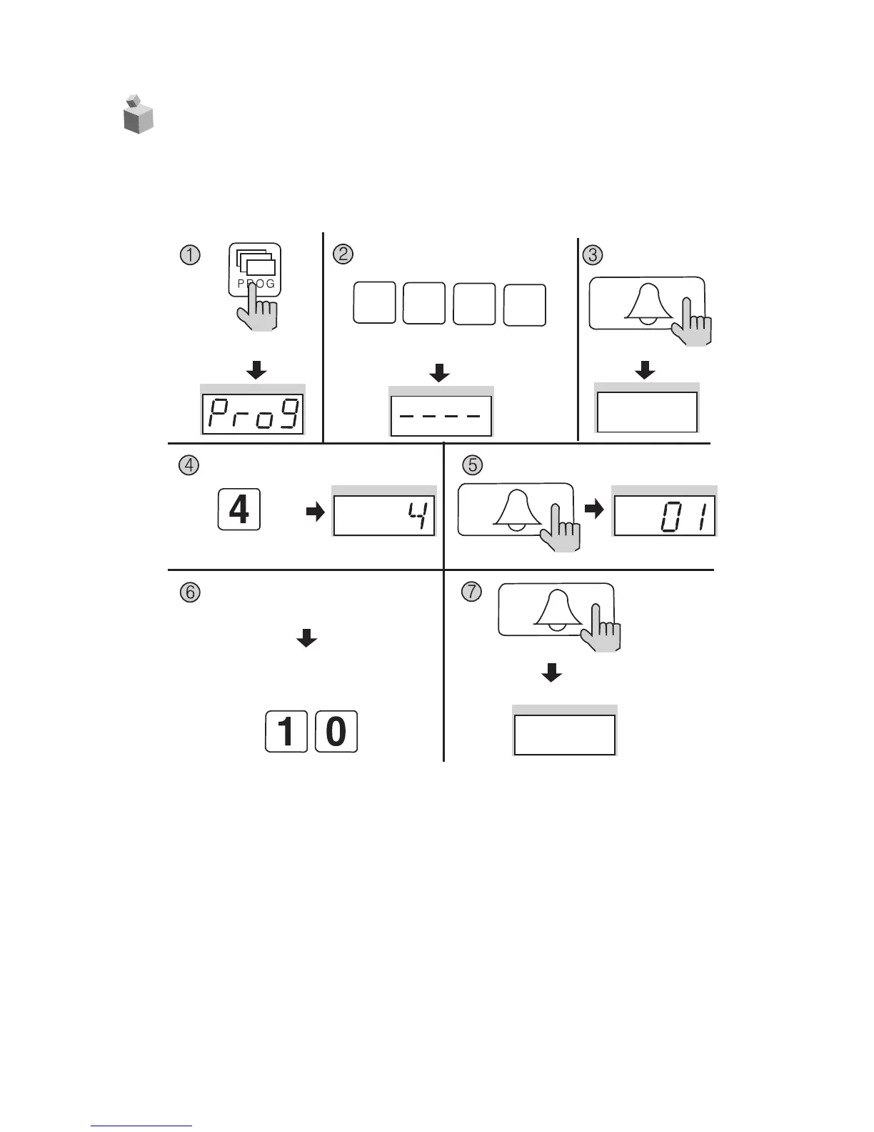 ① Press the Program button (P). (‘Prog’will appear)