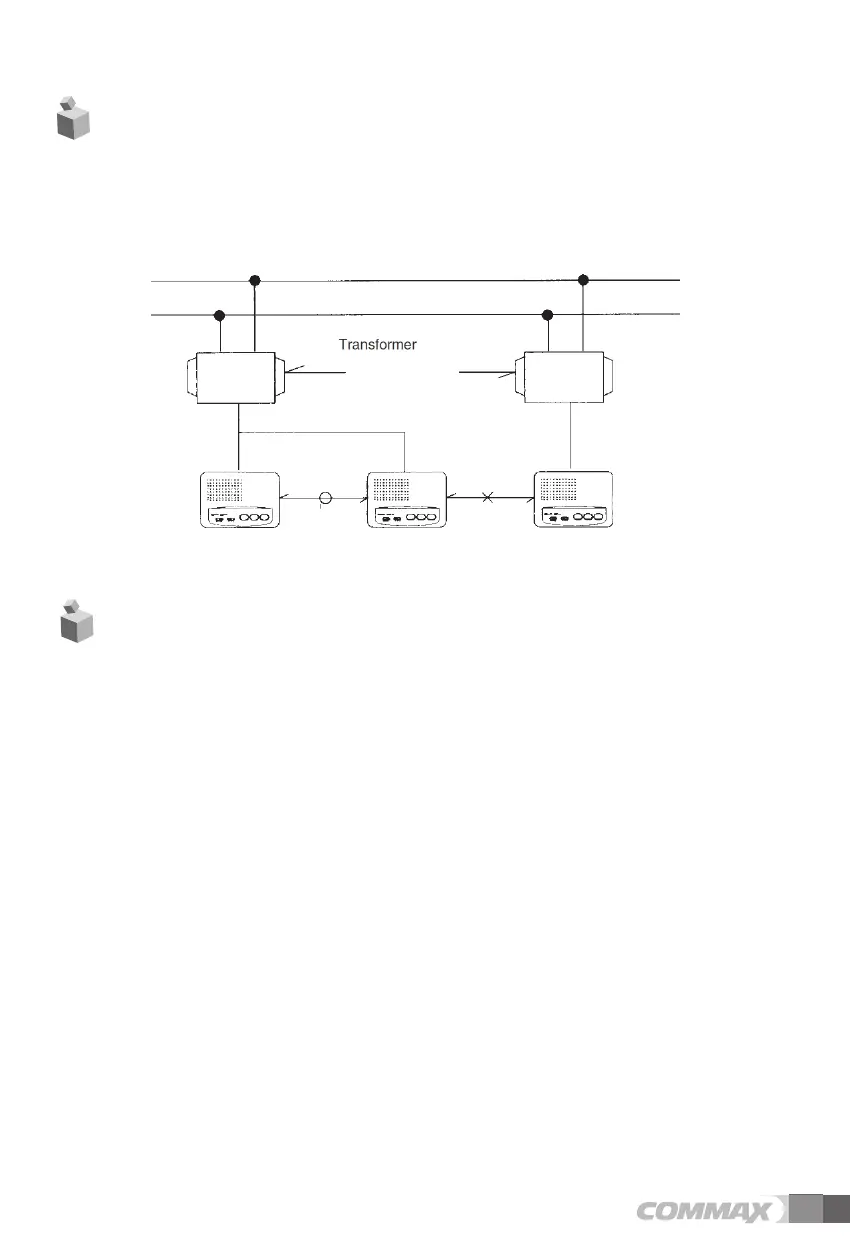 Telephoning is only possible between intercoms on the same mains network. If the intercoms
