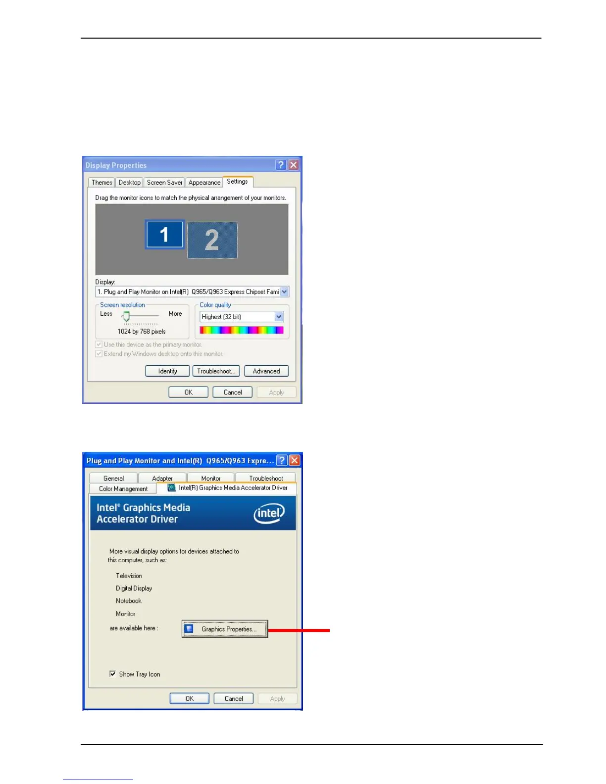 Based on Intel GM(E)965 GMCH with GMA X3100 (Graphic Media Accelerator), the