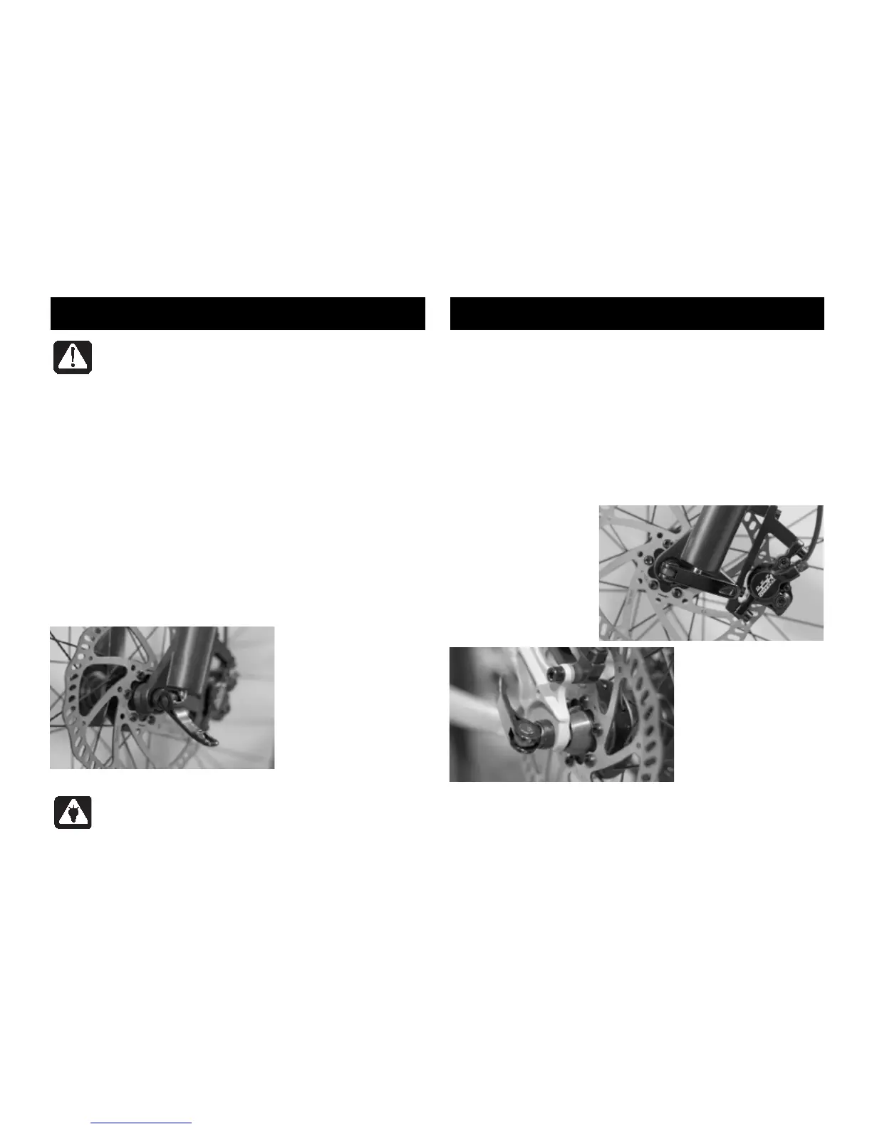 WARNING! Quick releases are essential security elements. The wrong adjustment