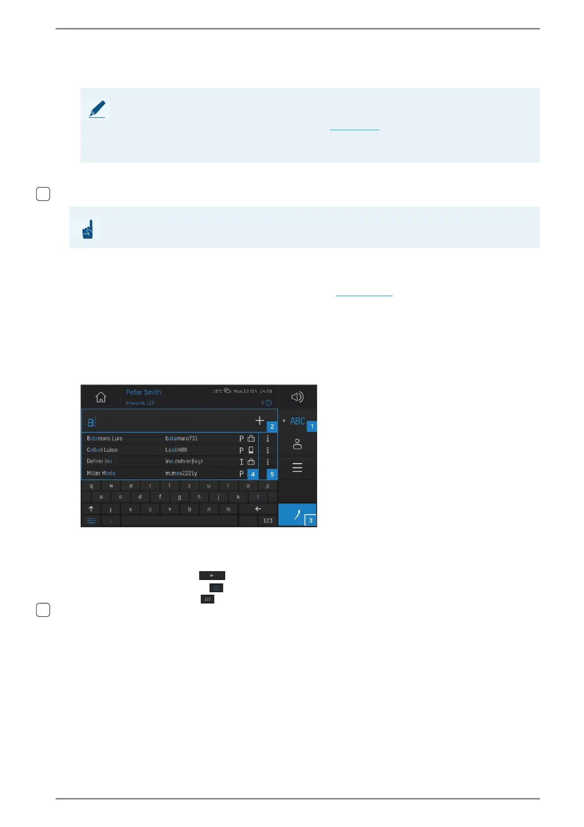 Tap on the entry box 2 and enter the call number or name via keyboard in order to show all matches