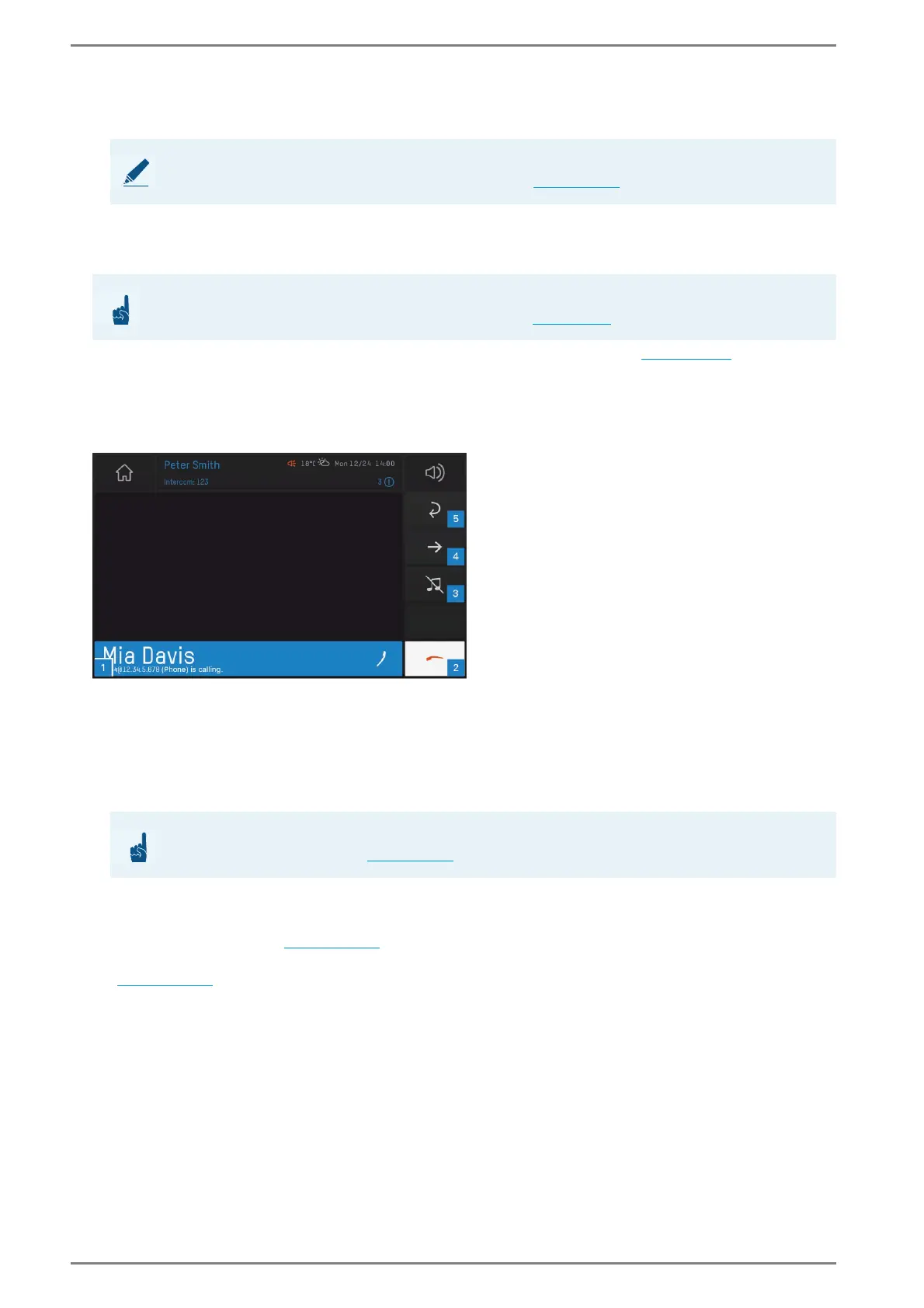 Information about the calling subscriber is displayed on the blue bar 1, (e.g. contact name, SIP call