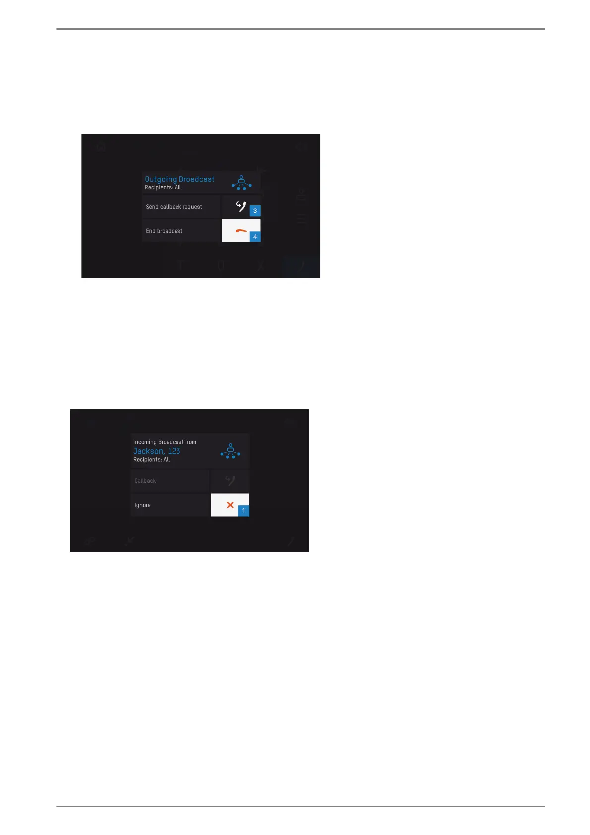 Tap on the white button 1 in order to cancel the active All Call or group call. An answer is not