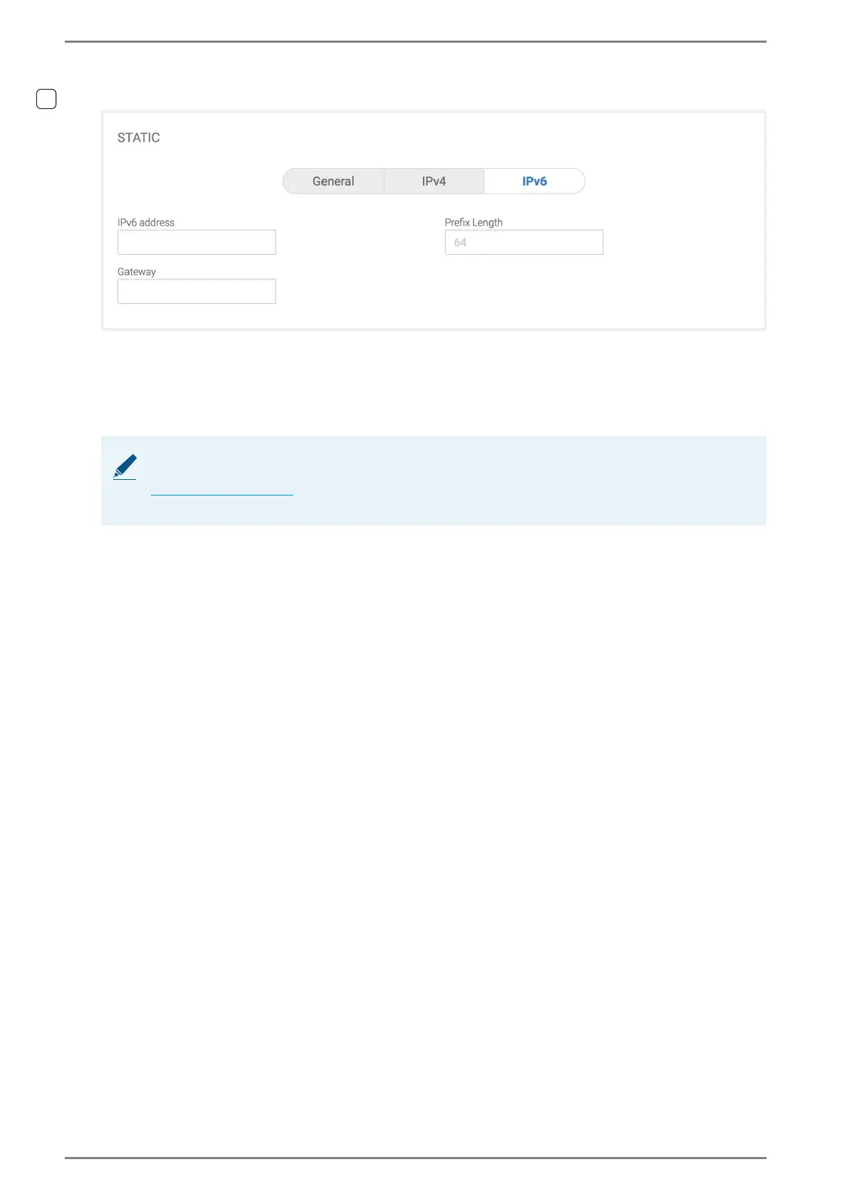IPv6 address: In this field, enter the IPv6 address of DUETTO.