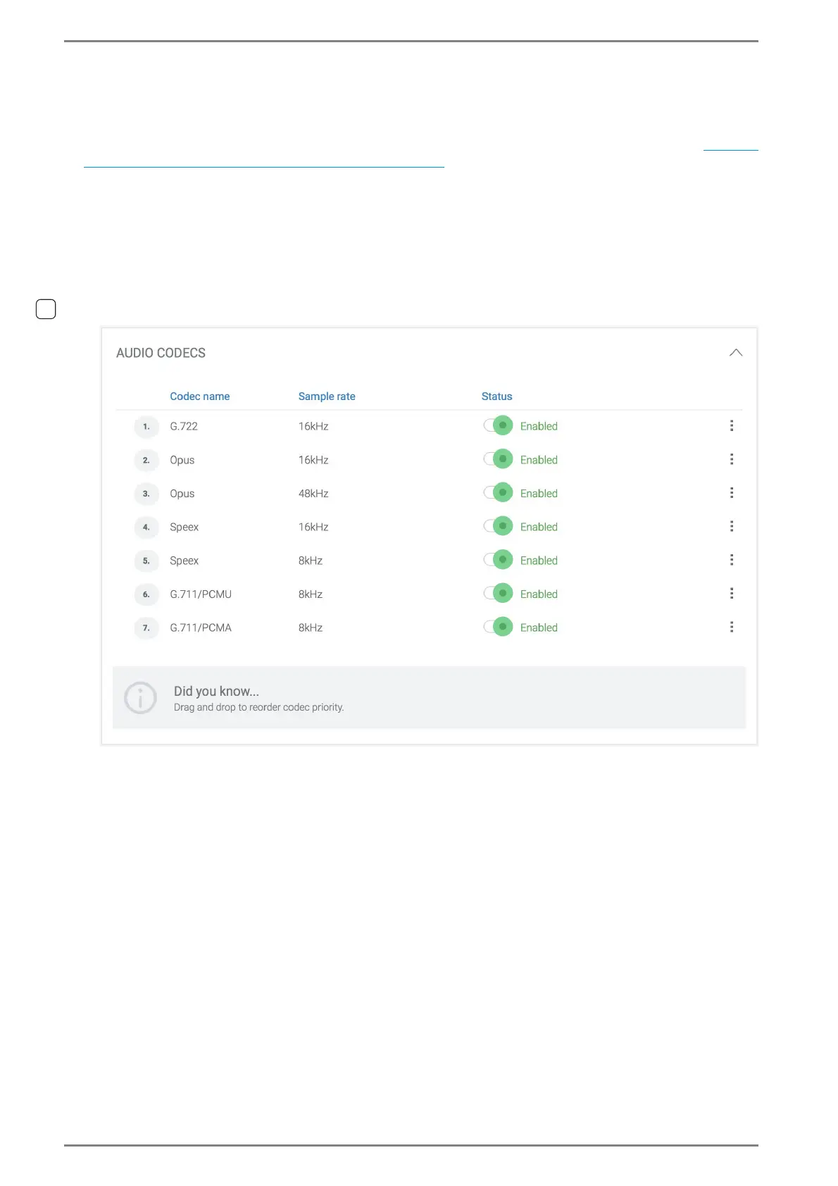 The priority for codec negotiation can be defined by drag and drop. The priority of the audio codecs