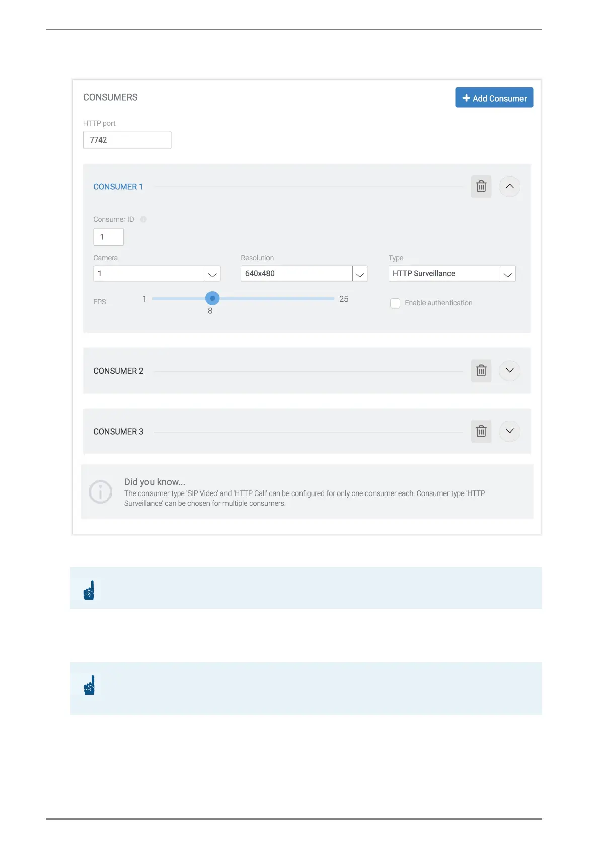 Consumer #: Shows the allocated profile number of the respective camera. This parameter is re-