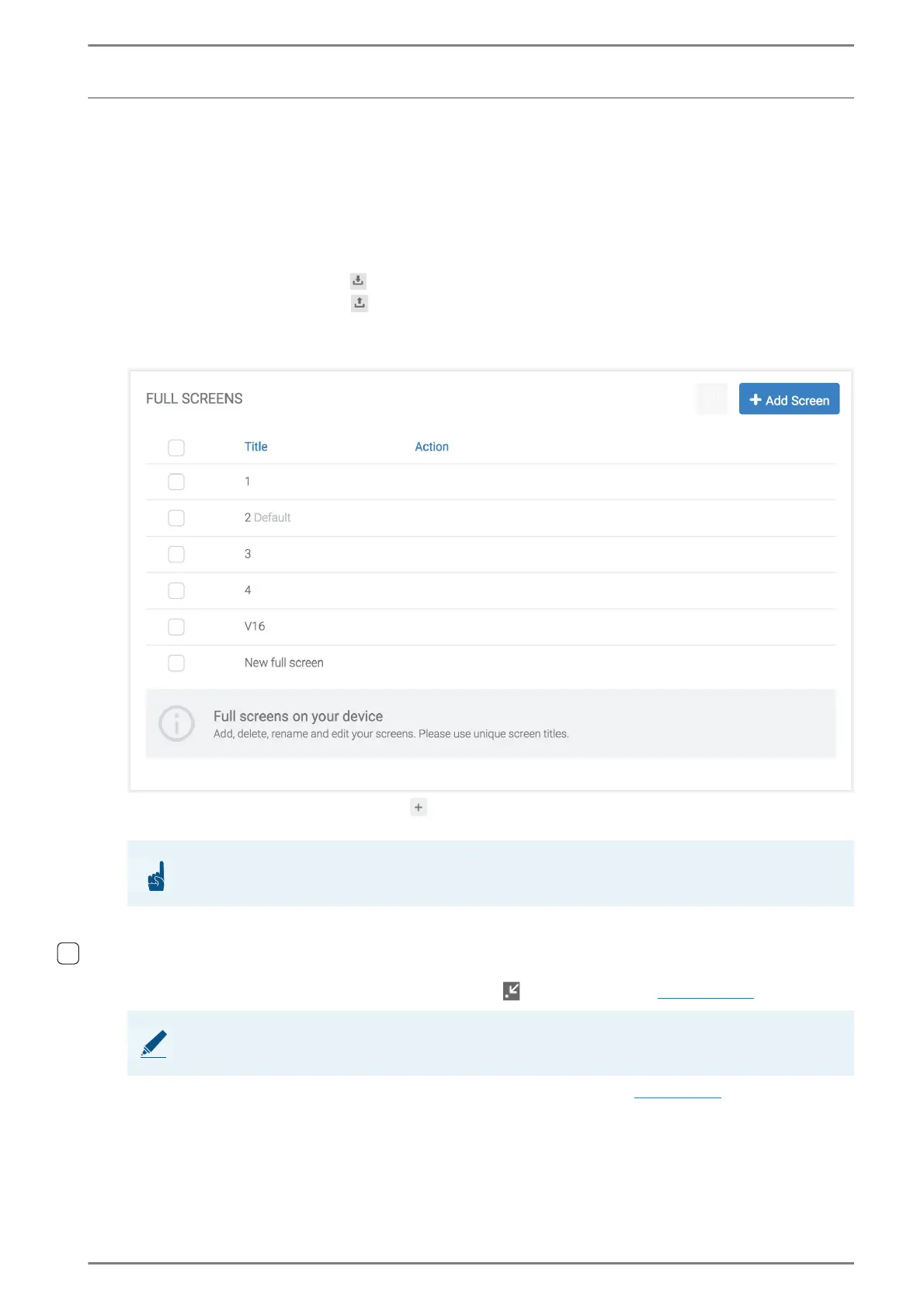 Click on the button Add screen to create a new full screen.